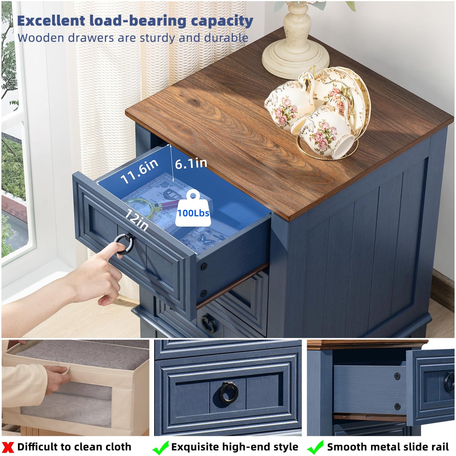 Joaxswe Farmhouse Nightstand Set of 2, 18 Inch End Table with 3 Drawer Metal Handle, Dresser for Bedroom, Sofa Bed Side Table Chest of Drawers,Wood Night Stand Cabinet for Organizer, Living Room-Blue