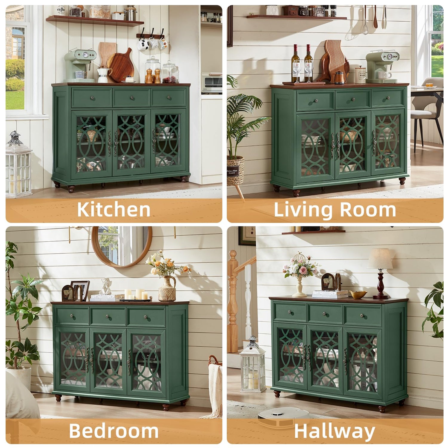 - [More Possibilities of Use]In addition to serving as a side board and buffet table, it can also be used as a coffee bar, bar cabinet, TV stand or even an entryway table. Whether you're brewing a cup of coffee in the morning or gathering with your family and friends at night, this versatile buffet cabinet with storage can meet your needs at different times and create memorable moments for you and your loved ones.
