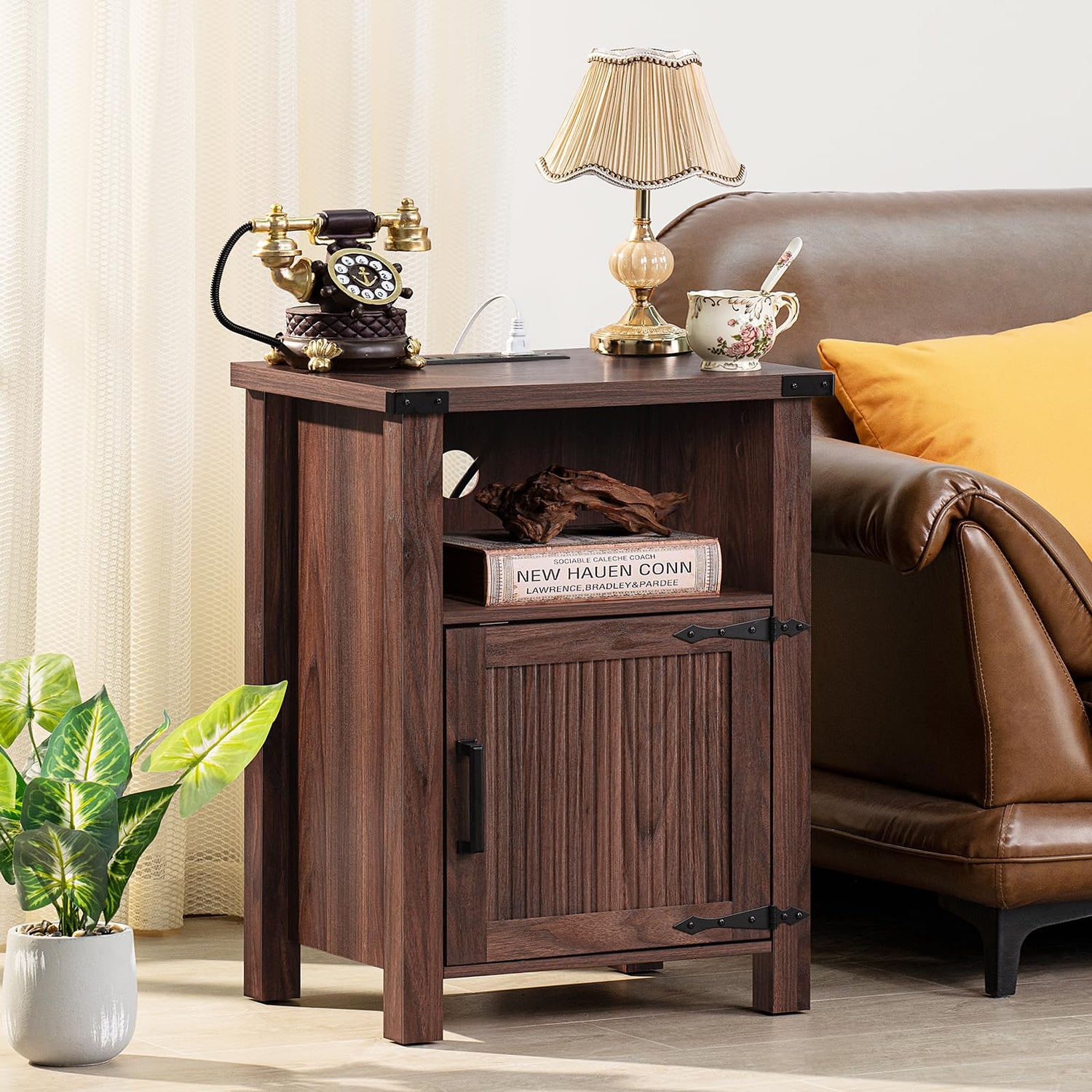 Joaxswe Night Stand Set of 2, 18 Inch Farmhouse Nightstand with with Charging Station and USB Port, Rustic Wood Bedside Table with Magnetic Door, Bed Side Tables for Bedroom, Brown Walnut