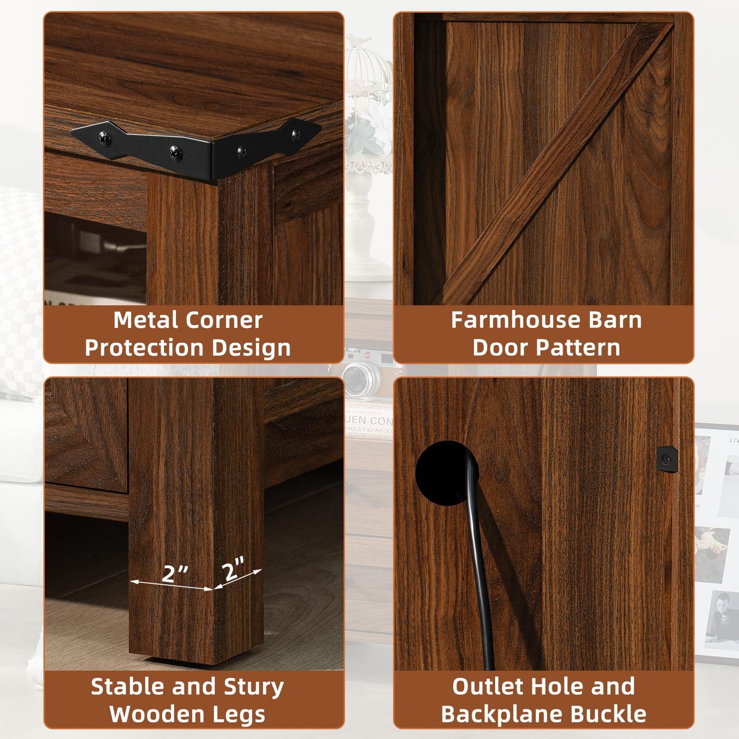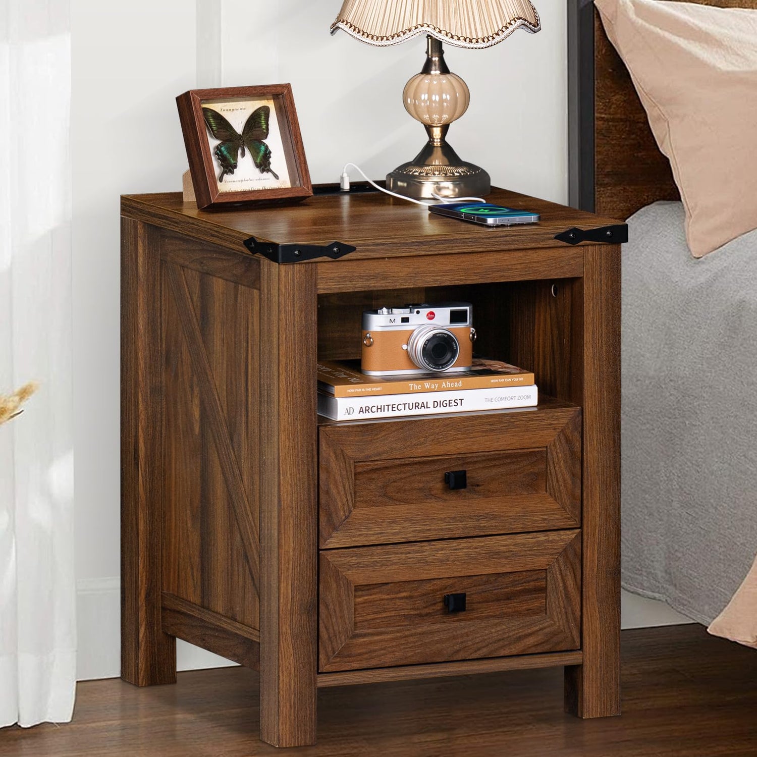 - [Farmhouse Nightstand] Joaxswe's wooden night stand is both beautiful and functional, which retains the grain of the wood and features a chic color clash design. It combines farmhouse style with modern, which is suitable for a variety of furniture decor. It also features a rustic finish and metal corner guards. Super craftsmanship, exquisite details and overall design adds unique character and charm to your living space.