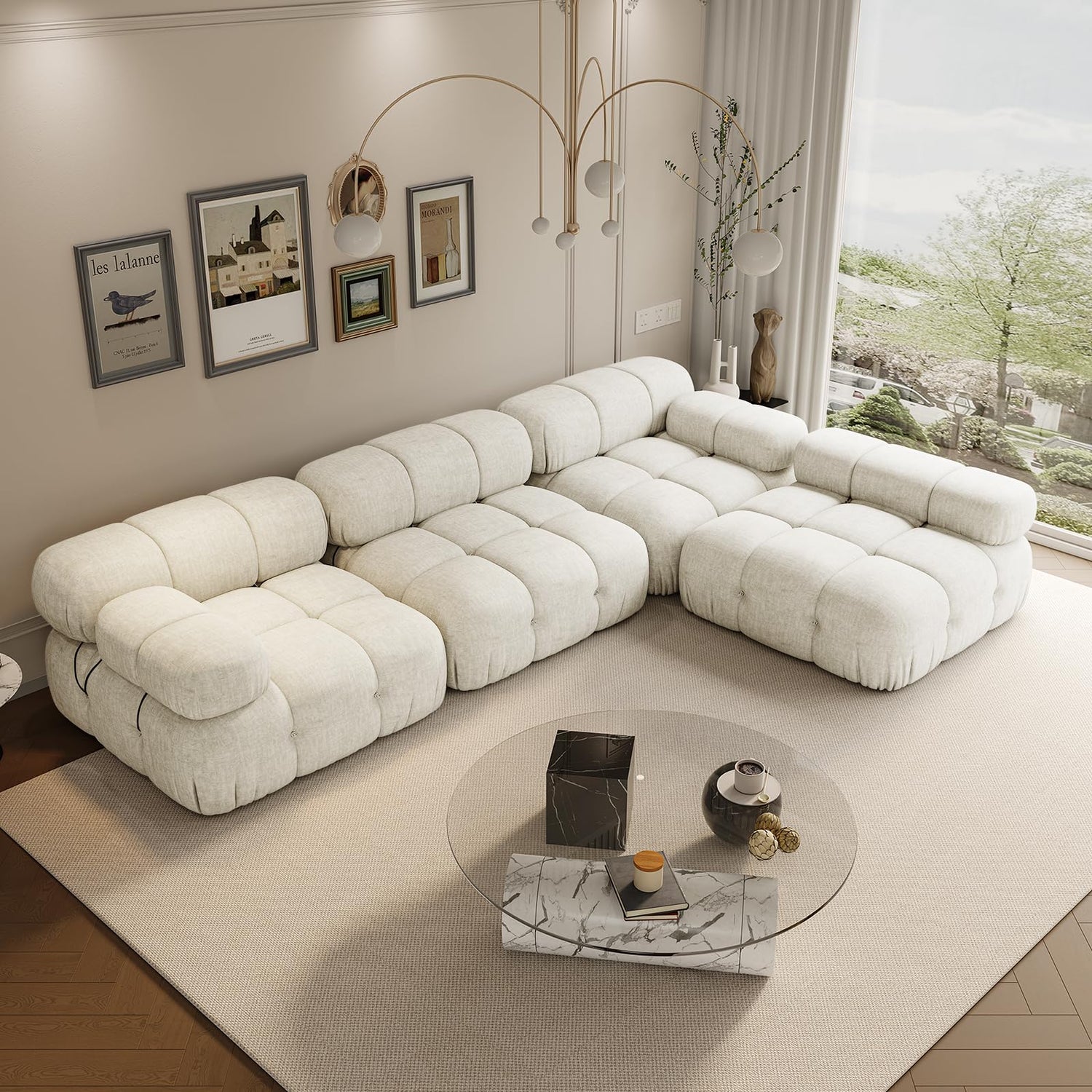 Jocisland 110'' Modular Compression Sectional Sofa Couches for Living Room Apartment, Oversize L Shaped Cloud Couch with Reversible Chaise Ottoman, Comfy Modern 4 Seater Boucle Floor Loveseat, Beige