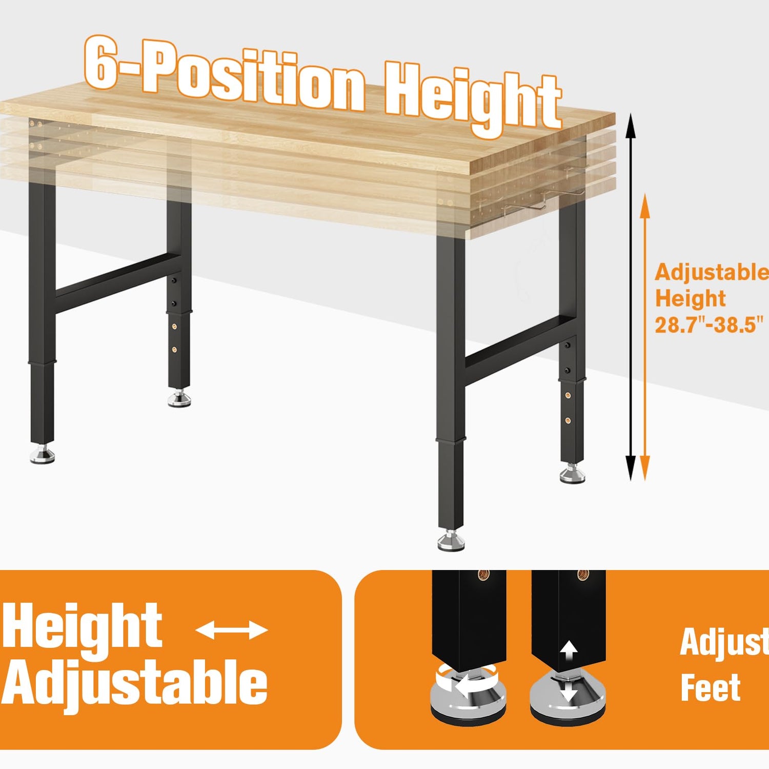 - Adjustable Height: Customize your work bench table to your ideal working height from 28.7" to 38.5", ensuring ergonomic comfort and reducing strain during extended work periods.
