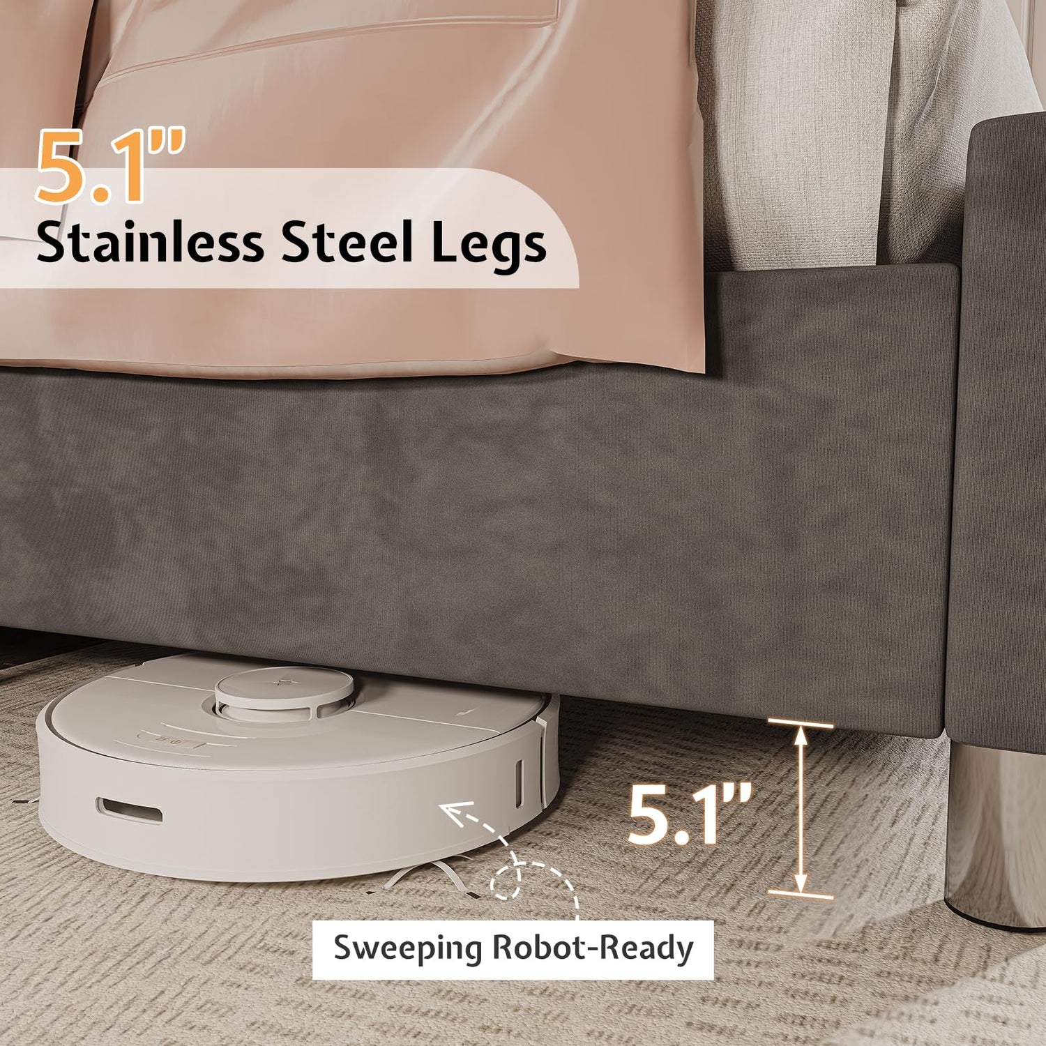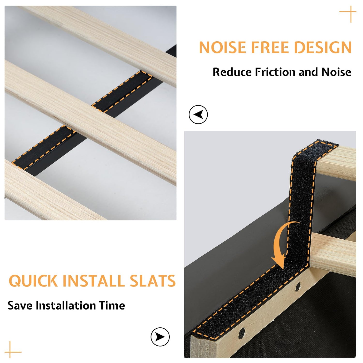 - Noise-Free Sleep: With magic tape and EVA mute strips, this upholstered bed frame reduces friction between wooden slats and the metal frame, ensuring a quiet and peaceful sleep.