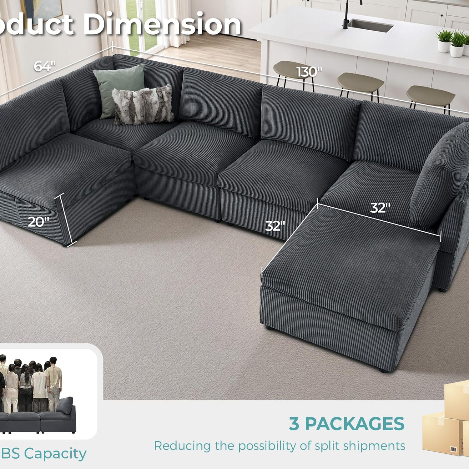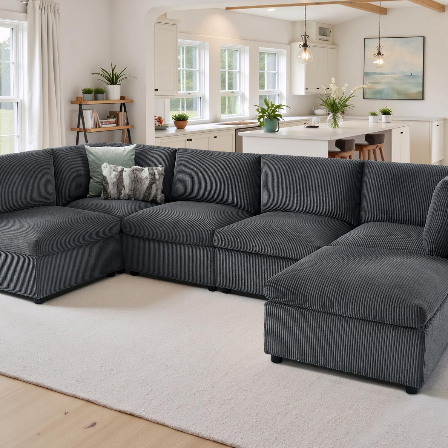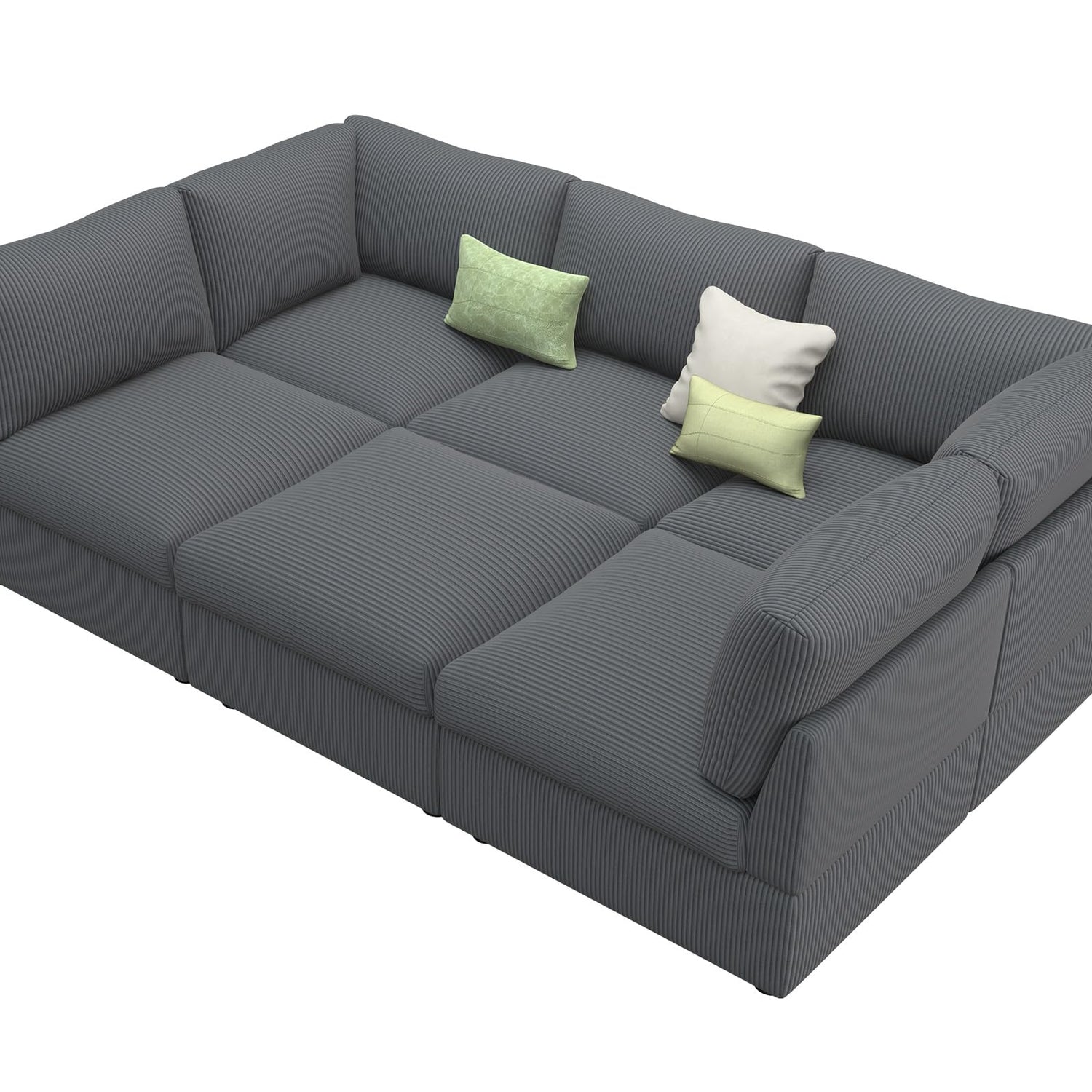 Jocisland Oversized Modular Sectional Sofa with 32" Deep Seat, 6-Piece Convertible U/L/S Modular Sofa for Spacious Living Rooms, Tool-Free Assembly, Corduroy Upholstery, Gray Sectional Couch