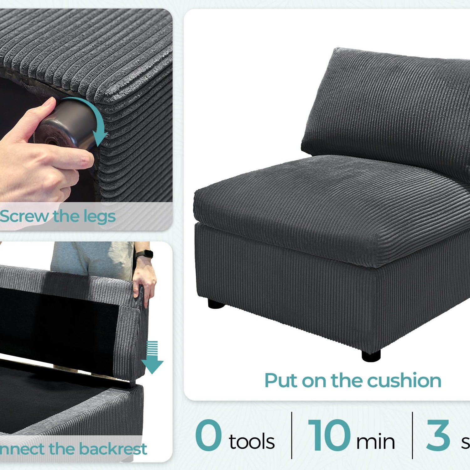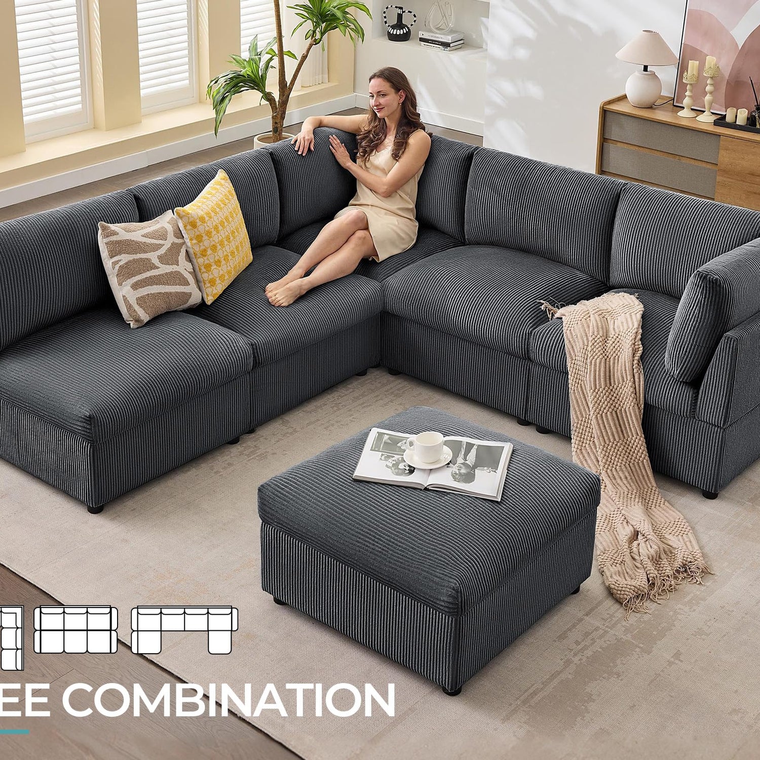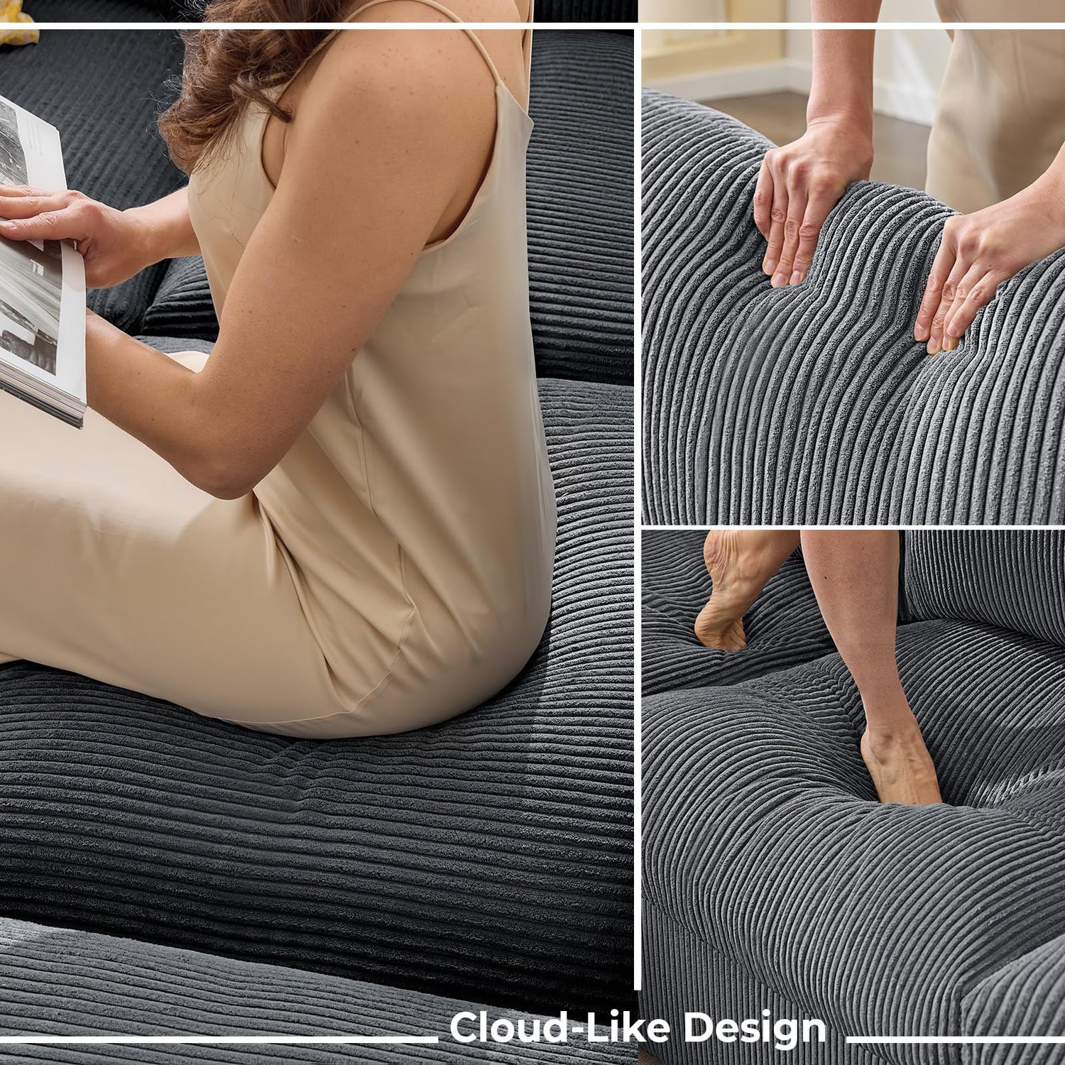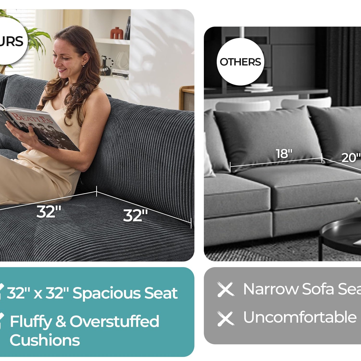 - Corduroy Fabric and Durable Frame: Soft, breathable upholstery combined with a reinforced hardwood base that supports up to 1800 lbs. This sectional modular sofa suitable for families and pet owners.