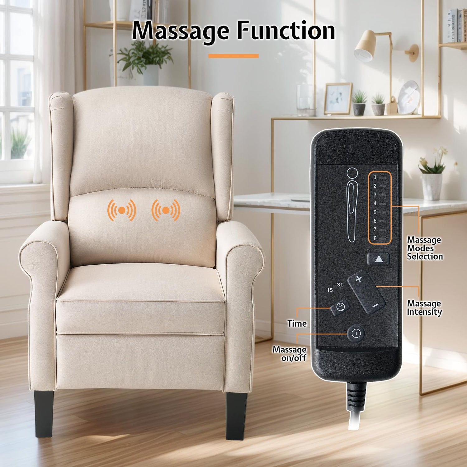 Jocisland Pushback Recliner Chair, Modern Fabric Wingback Armchair with Storage Pockets and Wood Legs, Classic Living Room Single Sofa for Small Spaces, Linen, Beige