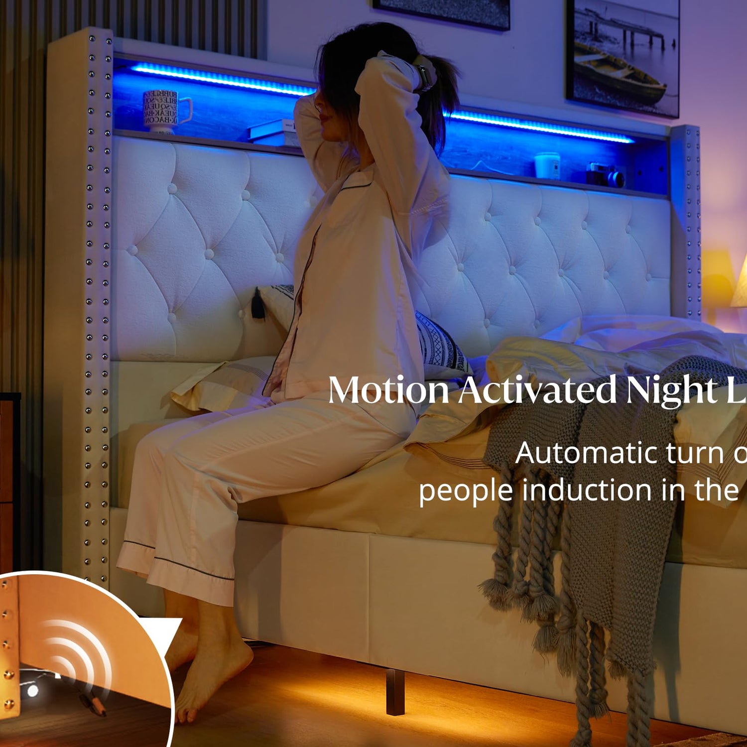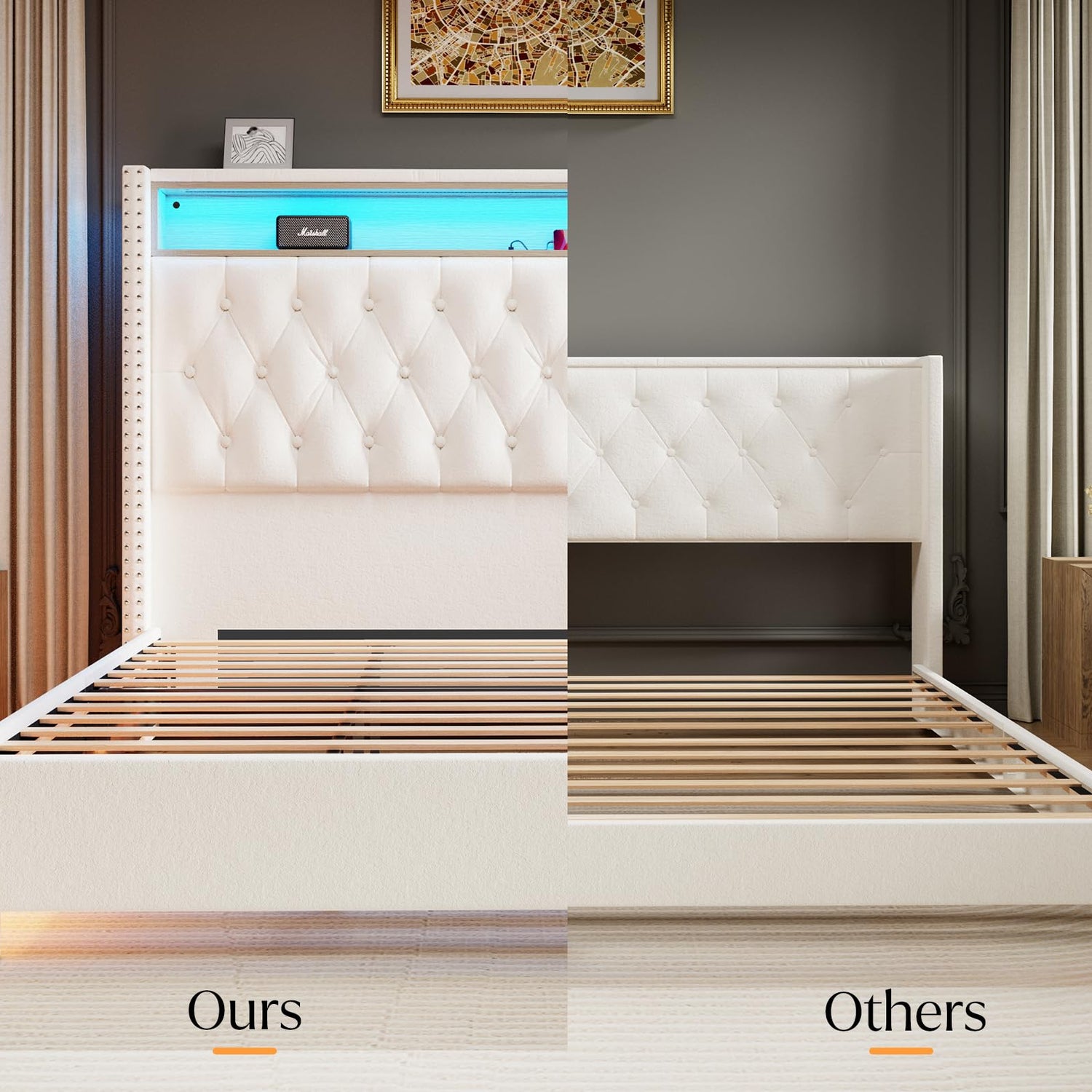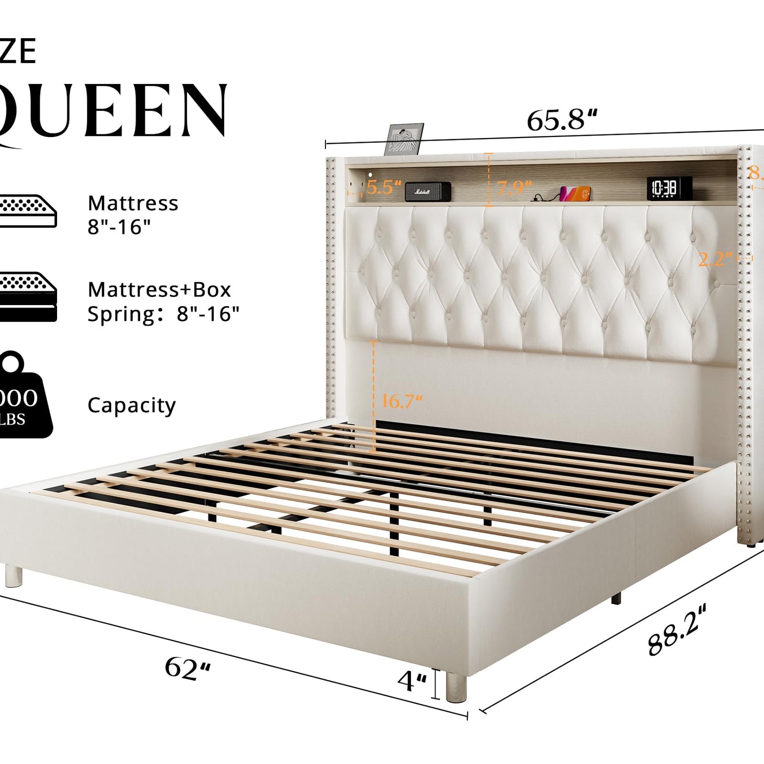 - Practical Storage & Charging Station: Organize your essentials effortlessly with storage in the headboard, keeping your phone, glasses, and books at hand. Dual USB charging ports provide easy device charging, enhancing your relaxation experience.