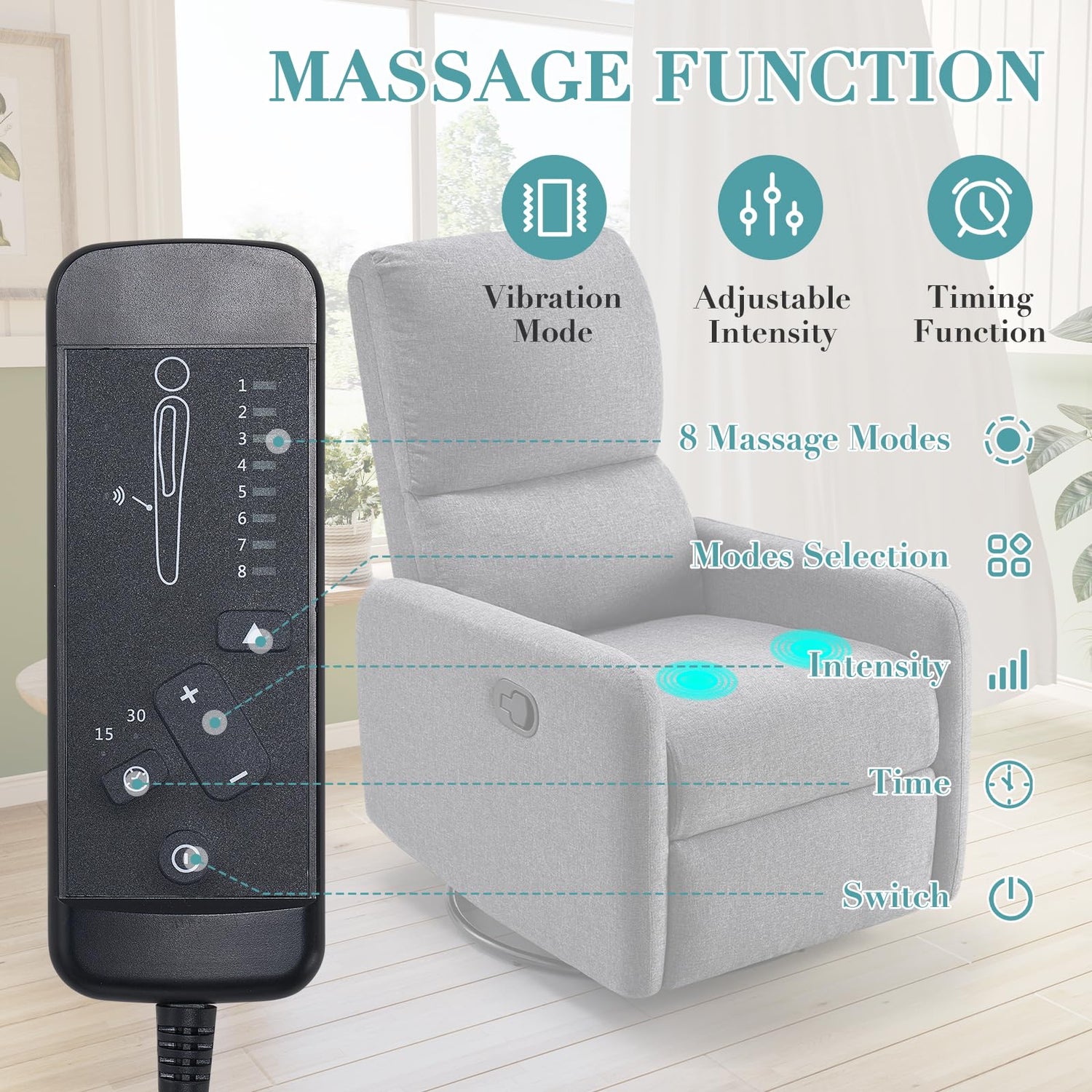 - Stylish Modern Design: The sleek, minimalist appearance of this swivel rocker recliner enhances any living room, bedroom, or nursery with a touch of sophistication. Its smooth contours add elegance and surprise to any corner of your home.