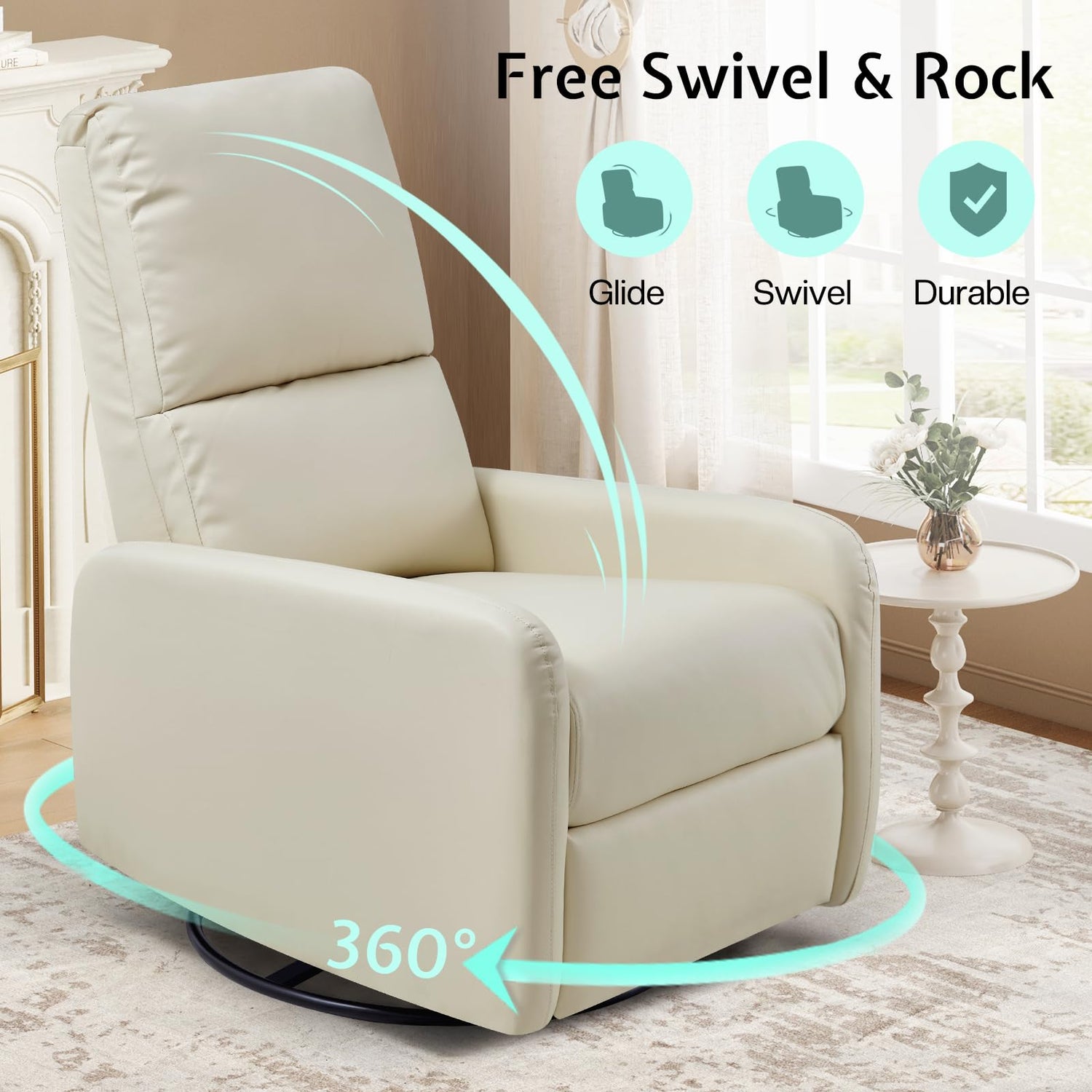 Jocisland Swivel Rocker Recliner Chair for Adults, Nursery Rocking Reclining with High Back, Small Glider for Small Spaces/Living Room/Bedroom/Nursing, Cream Leather