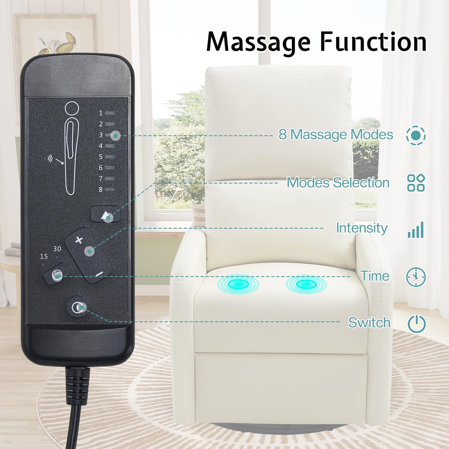 - Perfect 4-in-1 Function: This recliner chair offers multiple functions, including 360°rotation, back-and-forth rocking, a 160°reclining angle, and 2 massage points in the seat cushion. Enjoy personalized comfort and freedom with this chair.