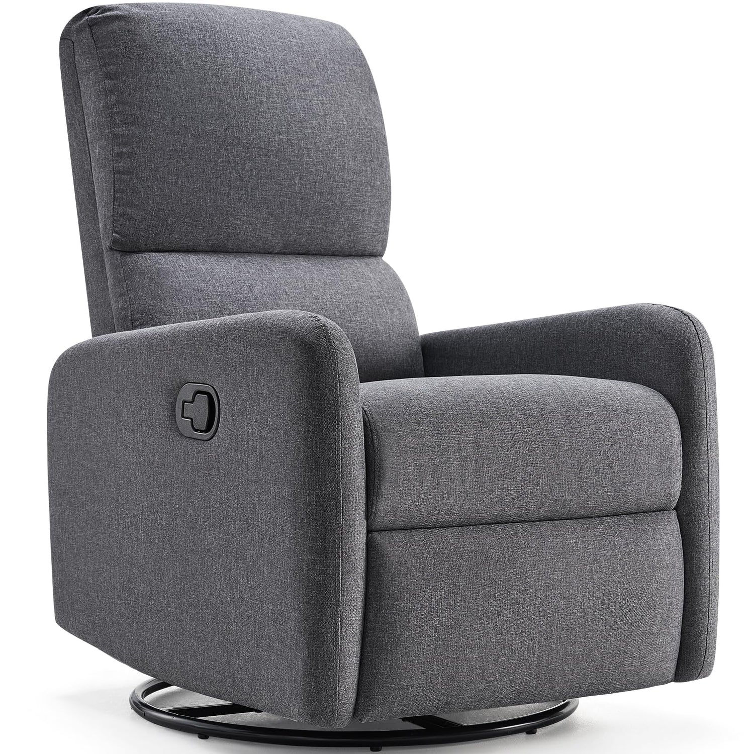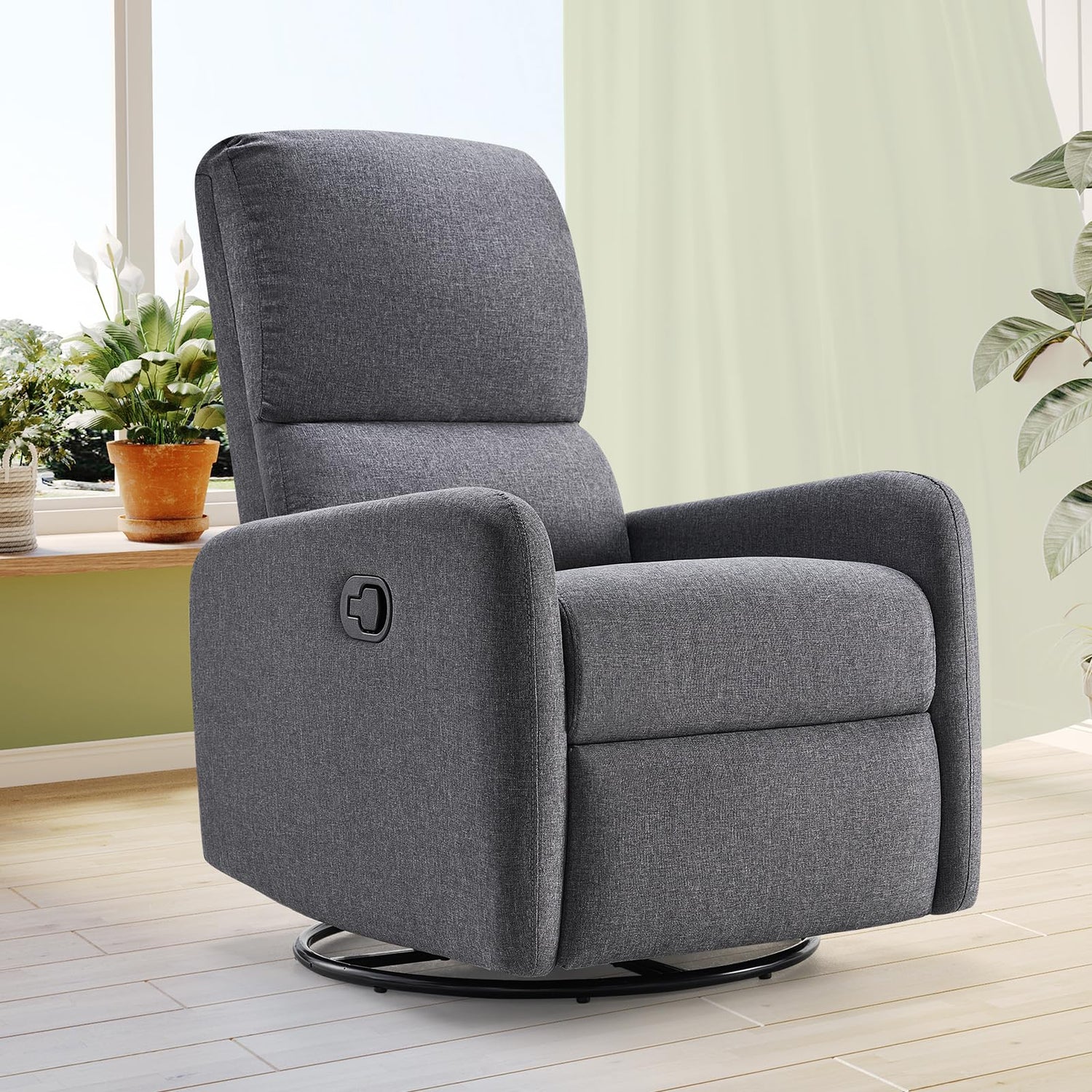 Jocisland Swivel Rocker Recliner Chair for Adults, Nursery Rocking Reclining with High Back, Small Glider for Small Spaces/Living Room/Bedroom/Nursing, Gray Linen