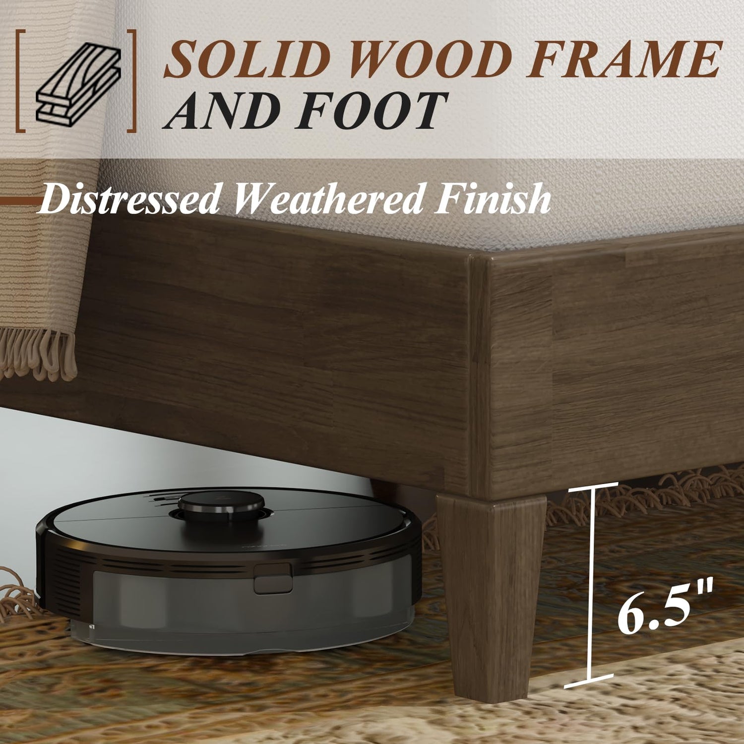 Constructed from durable solid rubber wood, the Jocisland bed frame showcases the natural beauty of wood grain, bringing warmth and character to your space. Its sturdy wooden structure ensures lasting support while the innovative design eliminates the need for a box spring. The solid, narrow-spaced wooden slats seamlessly support your mattress, providing a stable and comfortable sleeping surface.