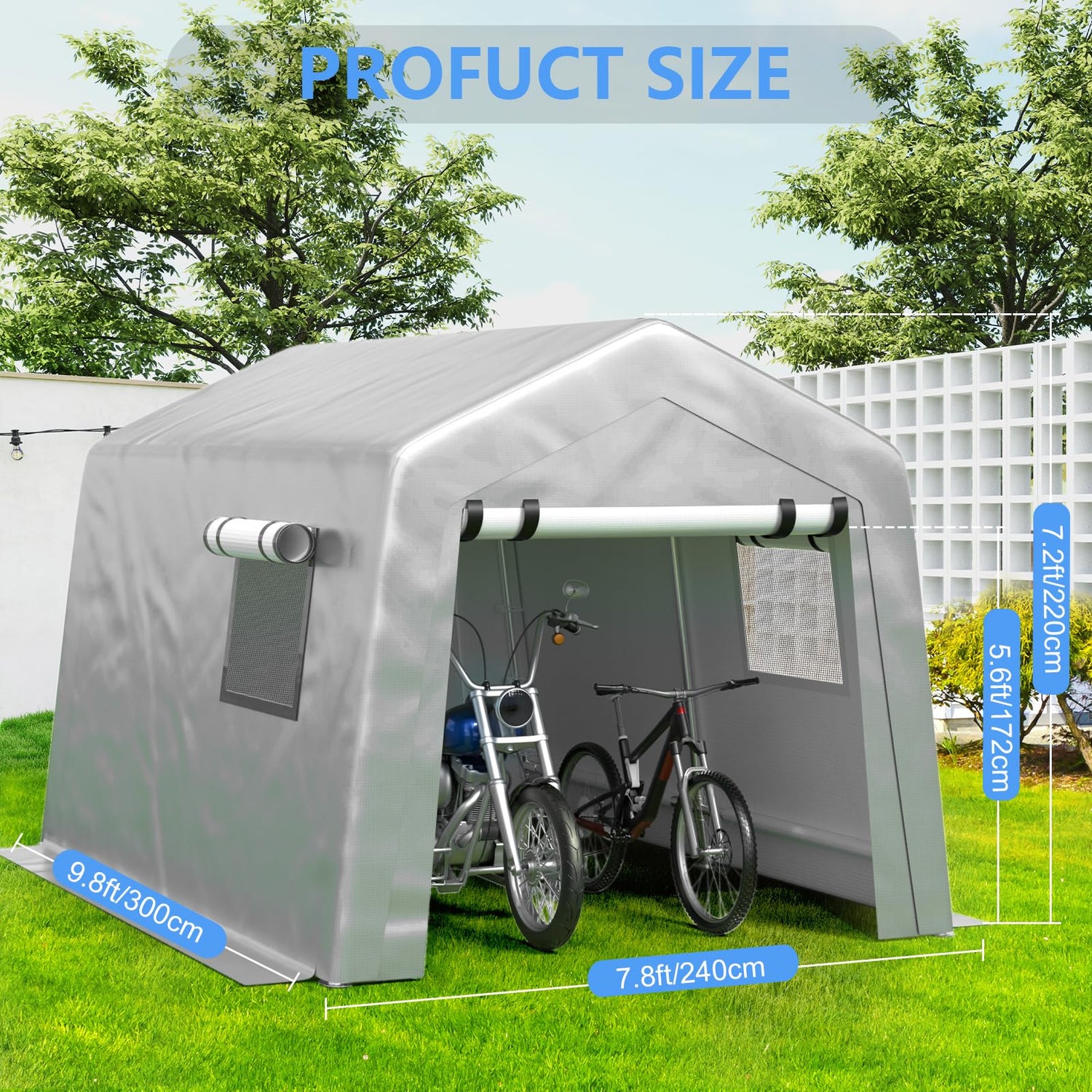 - ADAPTABLE SIZE FOR DIVERSE USES-Our carport comes in an 8x10ft option to cater to various storage needs. Whether you require pretection for motorcycles or other vehicles, this intermediate-sized shelter is ideal for rural households seeking versatile storage solutions