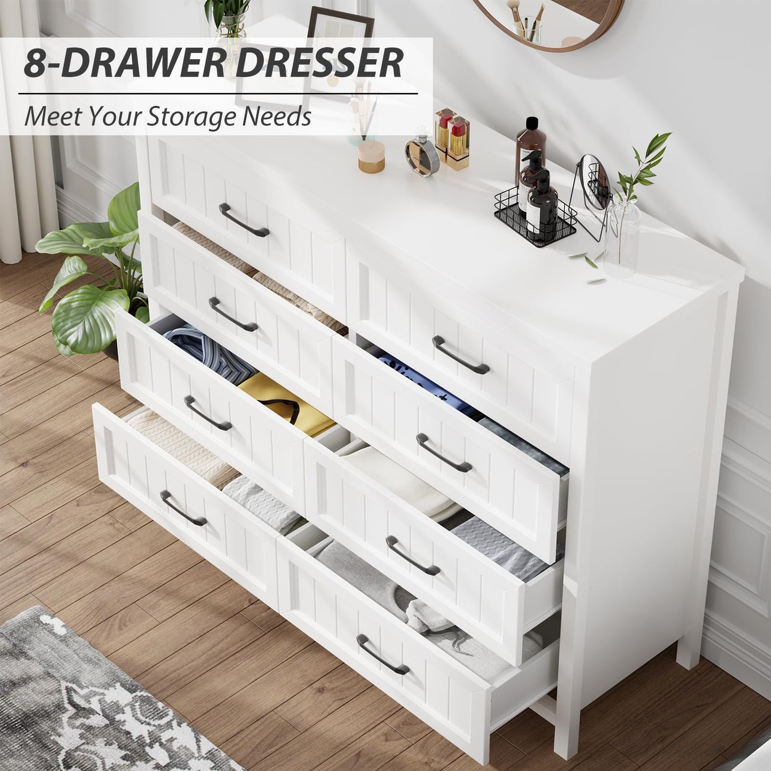 Jocoevol Farmhouse Dresser 8 Drawer Dresser for Bedroom, Large Wooden Dressers Double Grey Dresser with Deep Drawers Dressers for Hallway, Entryway (White)