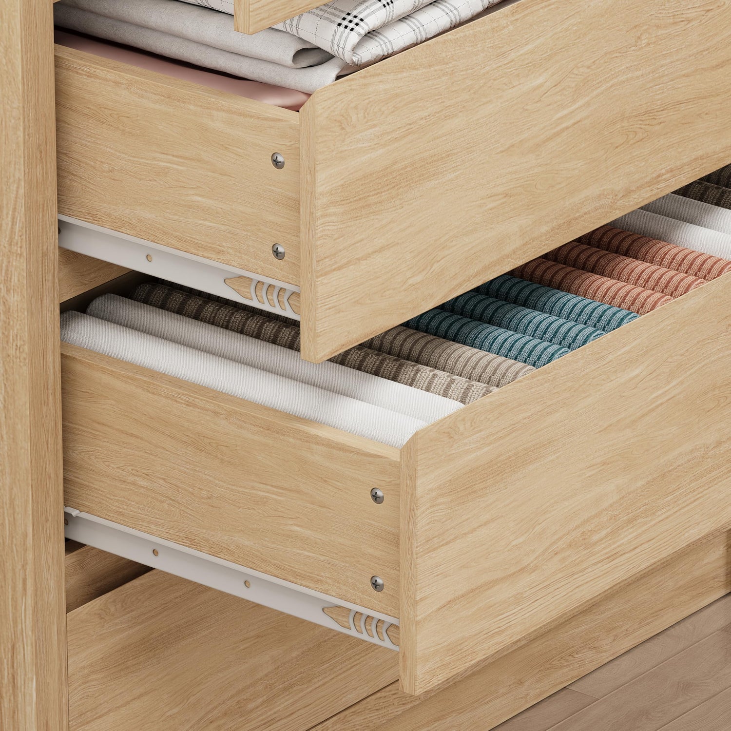 - MODERN MINIMALIST DESIGN: This dresser features a sleek oak tall dresser design with streamlined panels and hidden handles for clean lines that blends in perfectly with any decor style. The matte oak top exudes timeless elegance, making this wooden dresser a versatile addition to your bedroom. Practical and stylish - the perfect blend of simplicity and sophistication