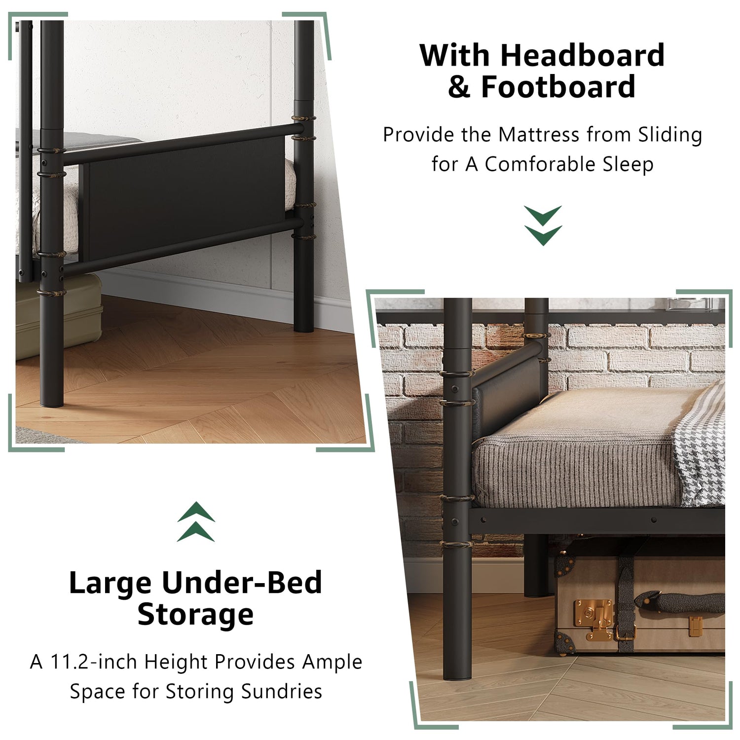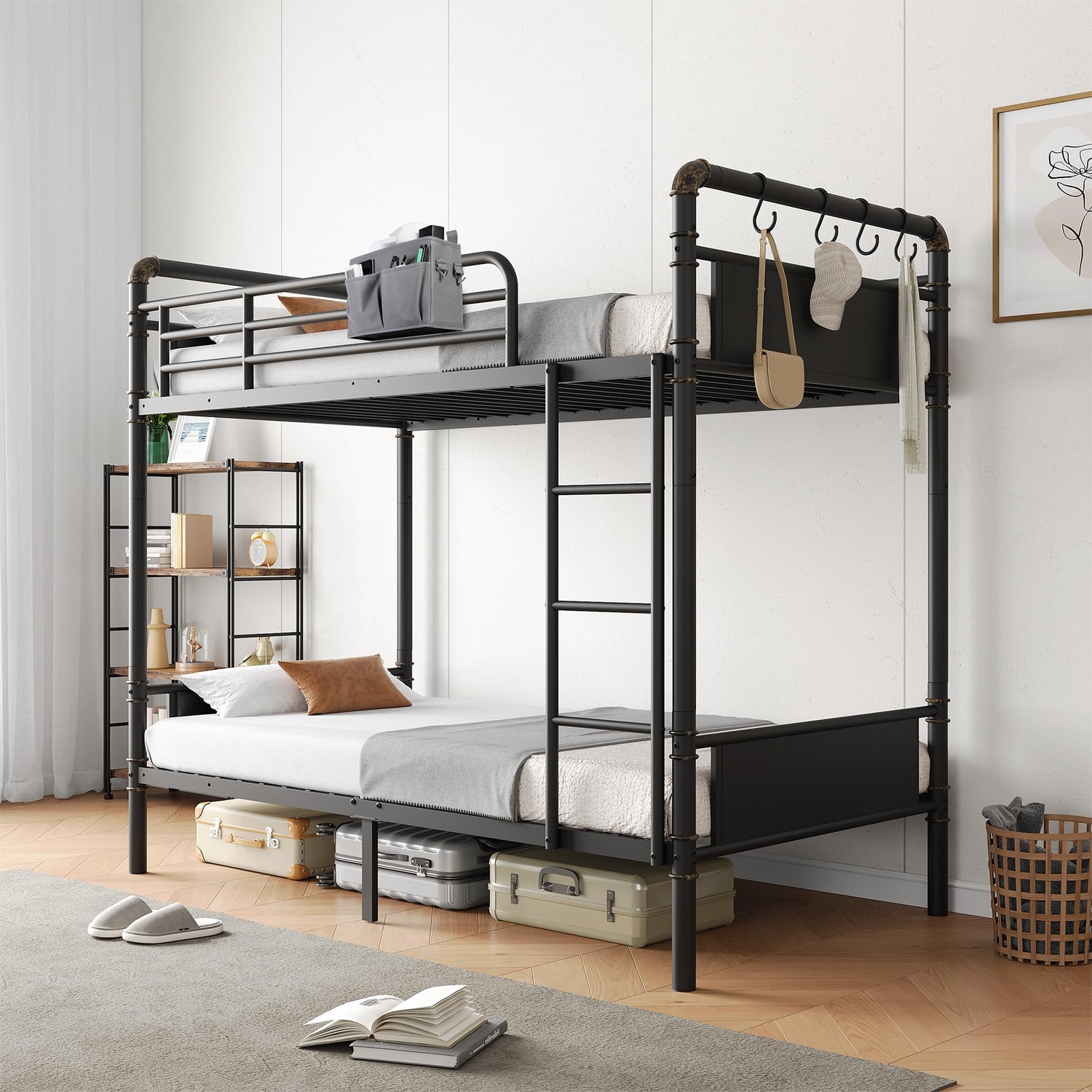 Jocoevol Metal Bunk Bed Twin Over Twin, Industrial Bunkbeds Heavy Duty Bed with Safety Guard Rails and Space-Saving Design, Steel Bed for School, Bedroom (Black Leather)