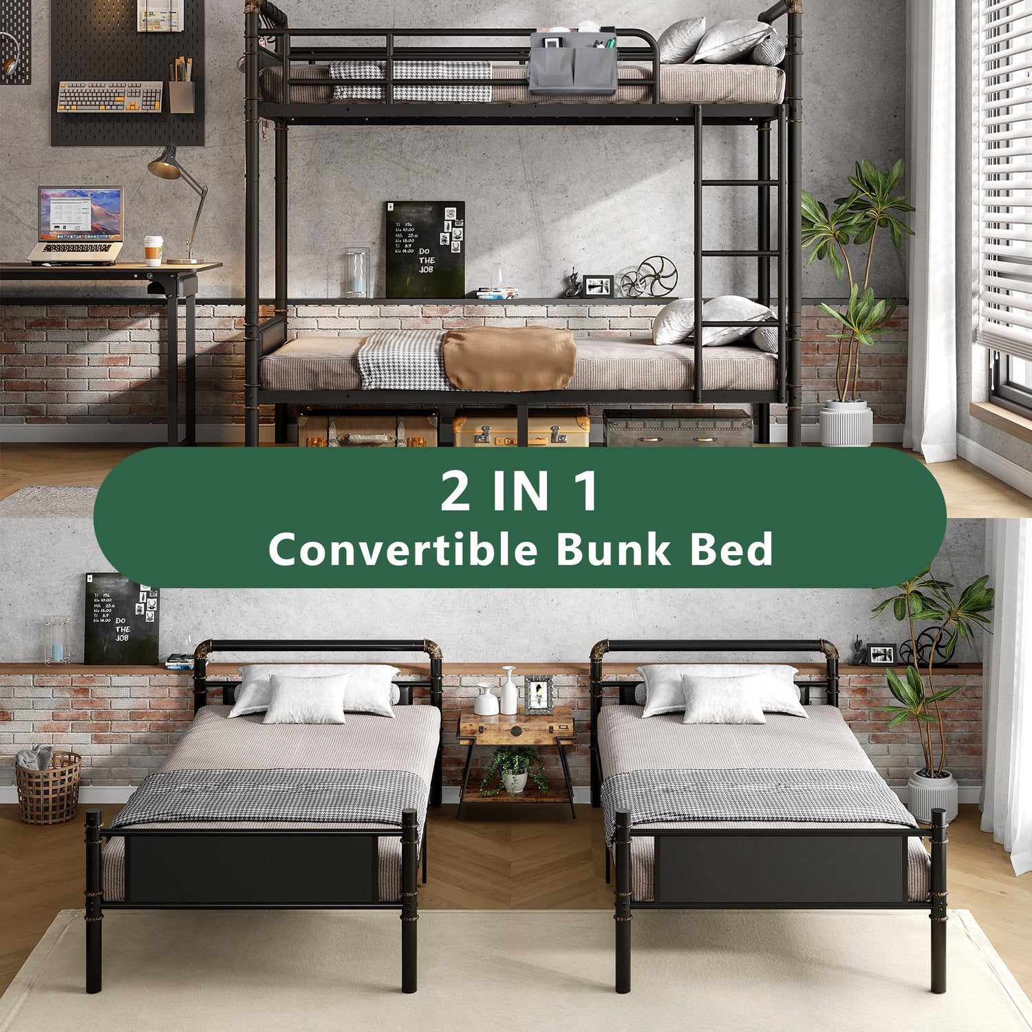 - 2-in-1 Convertible Bunk Bed: The bunk bed can be converted into two separate single beds to meet your different needs. It can be used in workers' dormitories, school dormitories, or as a children's bunk bed. The space-saving design is ideal for bedrooms