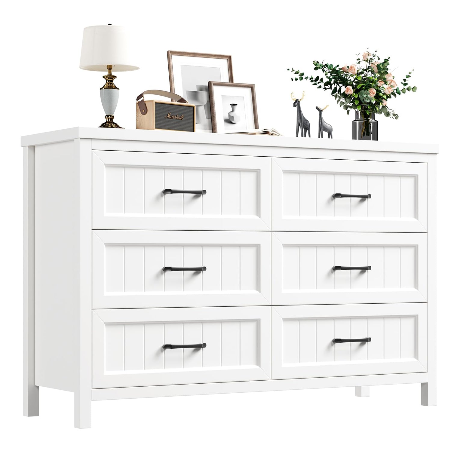 Jocoevol White Farmhouse 6 Drawer Dresser for Bedroom - Large Double Dressers TV Stand with Deep Drawers Dressers for Hallway, Entryway - Off White