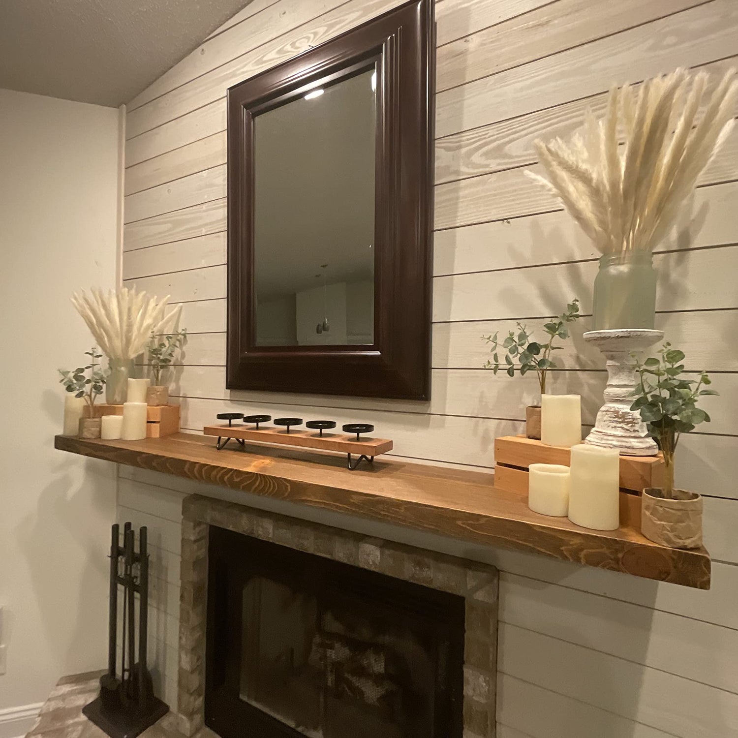 Joel's Antiques - 60 Inch Wooden Floating Shelves for Wall - Made of Natural Wood - Long Heavy Duty Rustic Fireplace Mantel & Book Shelf - Perfect for Living Room - Medium Brown 60x12x2 Inch