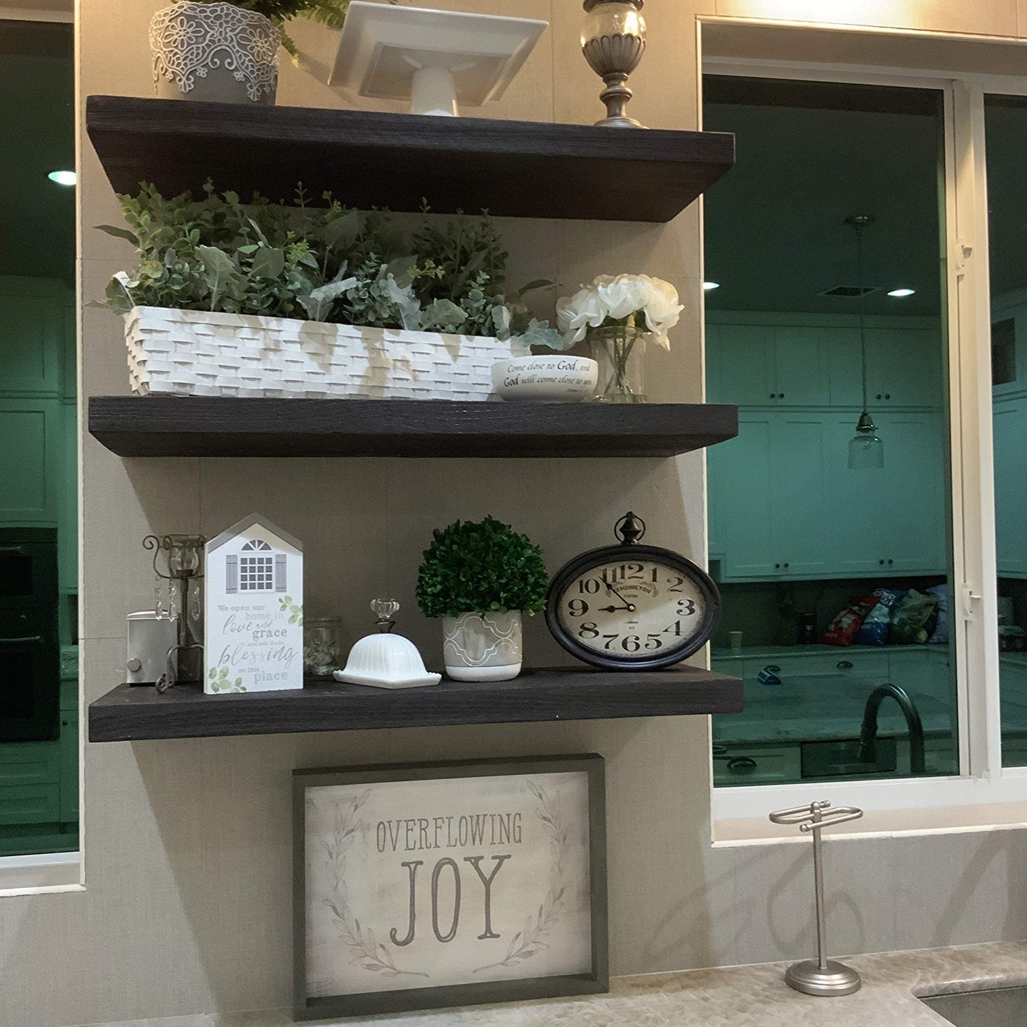 - Elevate Your Space with Rustic Charm: Transform your living room or any space with our large floating shelves for wall. These 60 inch floating shelf beauties, crafted from natural wood, add a touch of rustic warmth and provide ample display space for your cherished items.