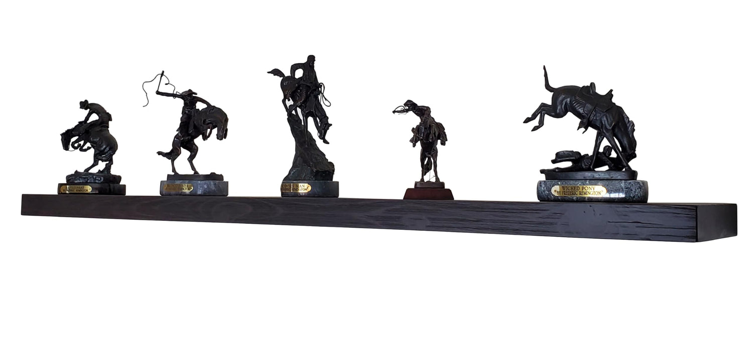 Joel's Antiques - 72 Inch Wooden Floating Shelves for Wall - Made of Natural Wood - Long Heavy Duty Rustic Fireplace Mantel & Book Shelf - Perfect for Living Room - Black 72x6x2 in