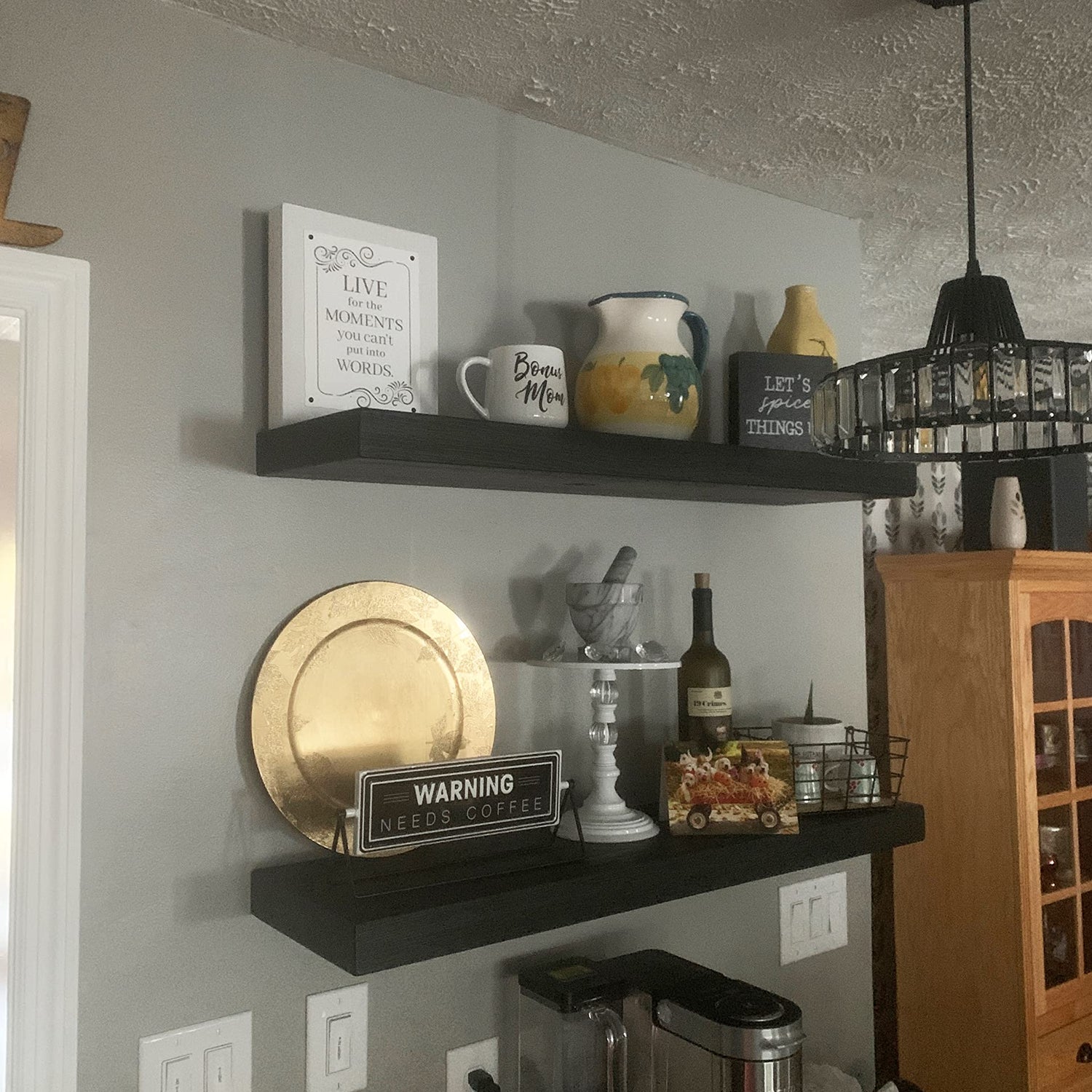 - UPGRADES YOUR LIVING SPACE: Tired of looking at those plain dull walls? Give your living room a unique and lived-in style by using our floating shelves to show a rustic, vintage, or country vibe.