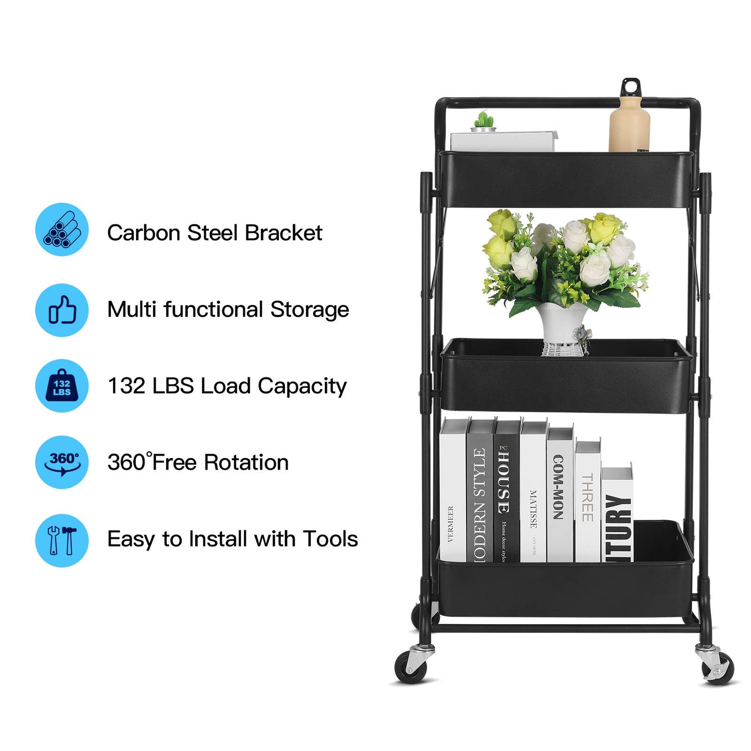 - 💖 【Excellent Baking Process & Superior Material】Sturdy construction and smooth painted finish with anti-rust properties,Oil Proof, Scratch Proof. It can be used indoors or outdoors. Each storage cart shelf can hold up to 60 pounds.