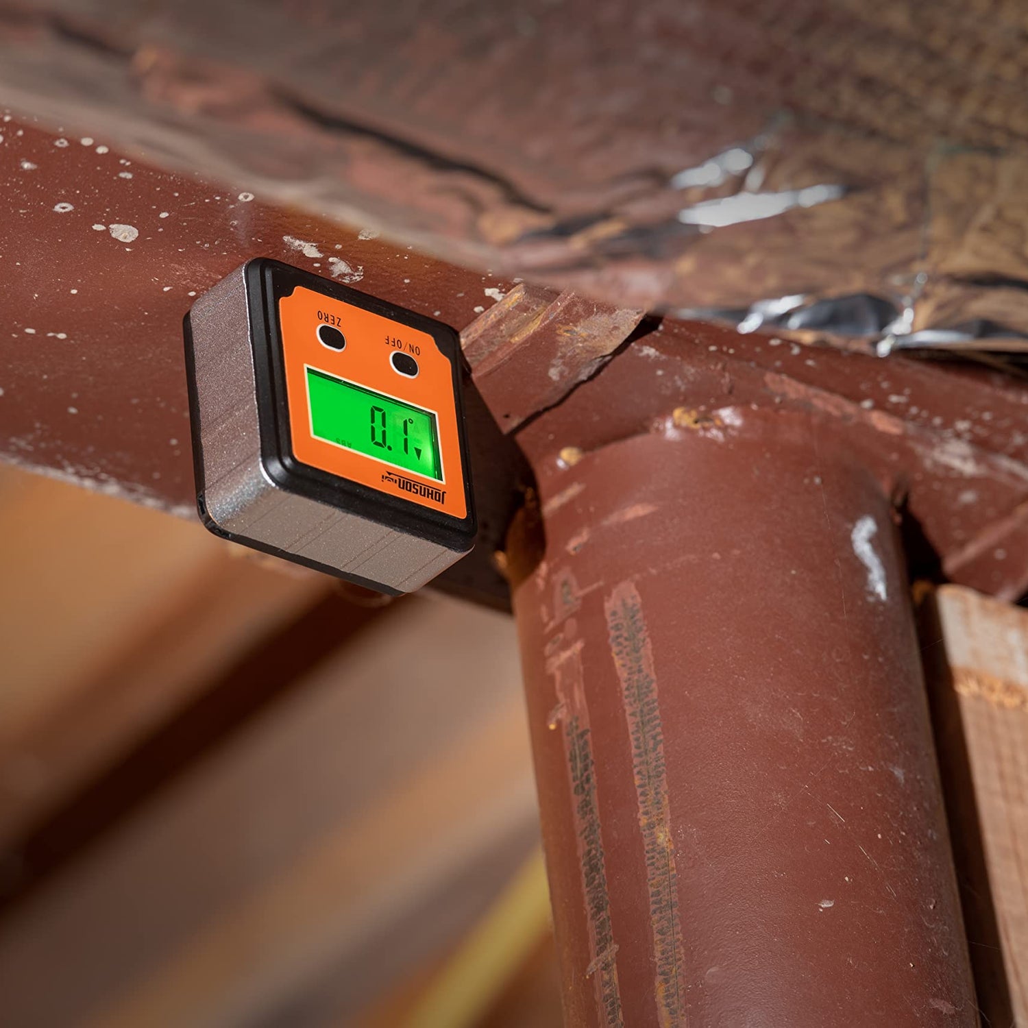 - MAGNETIC BASE: This 2-button magnetic digital angle locator features strong rare earth magnets that provide strength and durability. Its magnetic base makes it ideal for use when working on ferrous surfaces like steel studs.