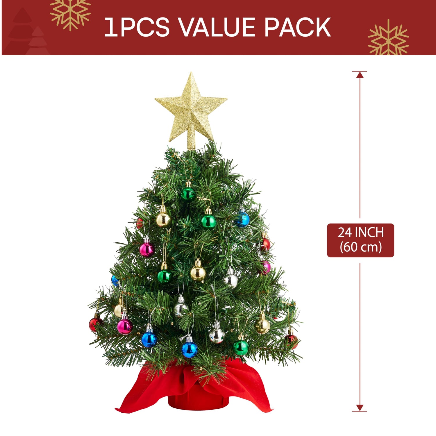 Joiedomi 24"/2FT Mini Christmas Tree Tabletop Set with Clear LED Lights, Artificial Mini Christmas Tree with Star Treetop and Hanging Ornaments, Best DIY Xmas Decorations
