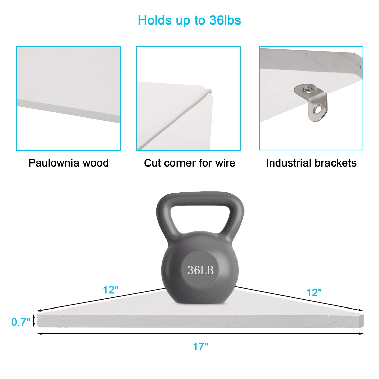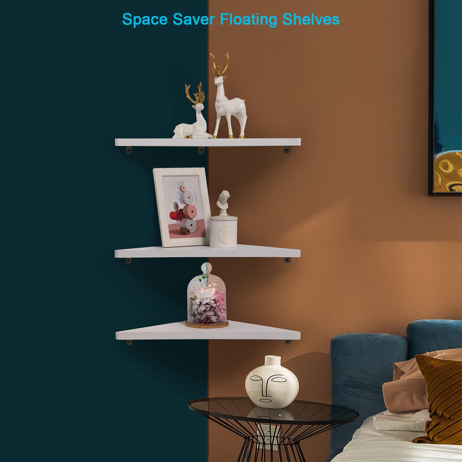 - Space Saver Floating Shelves: Make better use of your corner. The corner wall shelf is lightweight for hanging. Three shelves have the same size could storage the daily accessories for the wall corner without holding any other free space. Especially for small space home, this shelf is nice to solve your problem.