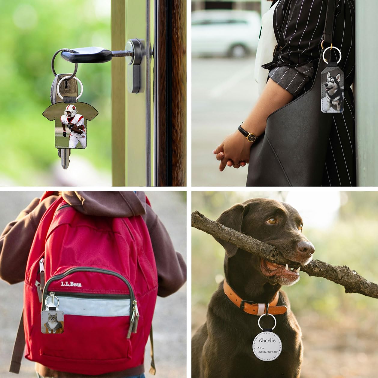 - Material: The sublimation blank keychains are made of quality PU leather, durable, portable lightweight, waterproof, and without fade.