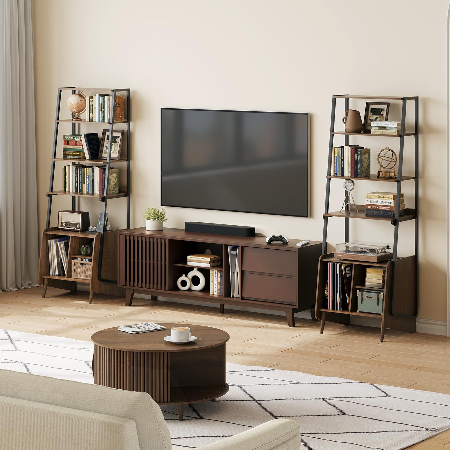 - 【Mid Century Modern Charm】Elevate your room’s aesthetic with this mid century modern bookshelf. Featuring clean lines and a walnut finish,bookshelf blends effortlessly with any décor while offering practical storage and display solutions