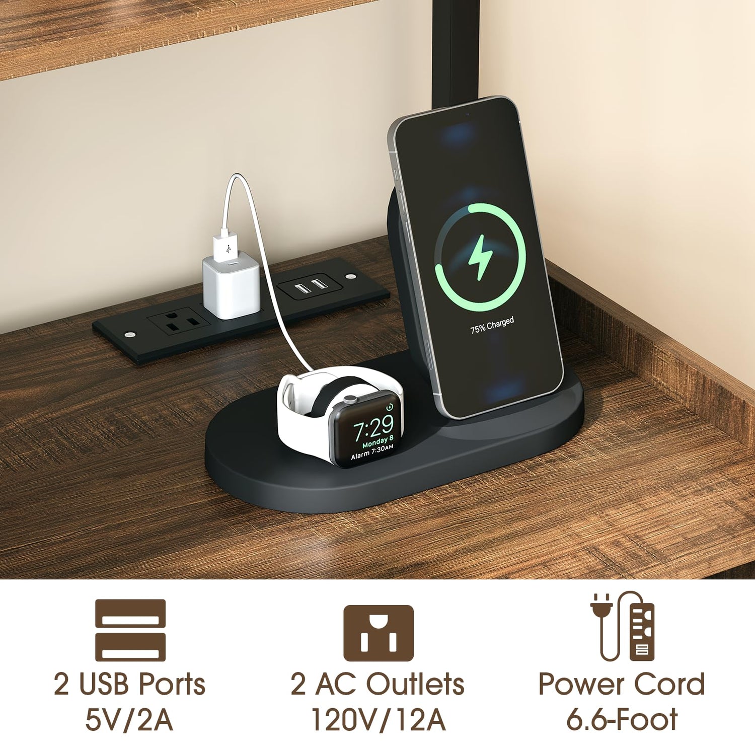 - 【Built-in Charging Station】Our bookshelf with charging station comes with 2 AC outlets and 2 USB ports, which can charge 4 electronic appliances at the same time. The 6.6ft long power cord satisfies your charging needs