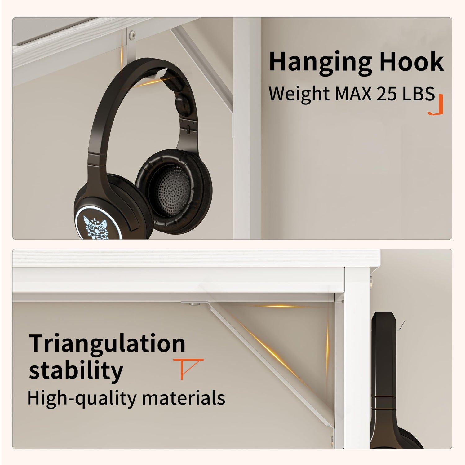 - 【Stable & Sturdy】 The desk is made of thicker and thickened carbon steel square tubes, also equipped with 2 diagonal supports to support the structure of the table body stable and not shaking, load-bearing up to 330 pounds. The desktop is made of E0 grade particle board and good coating material, scratch and waterproof.