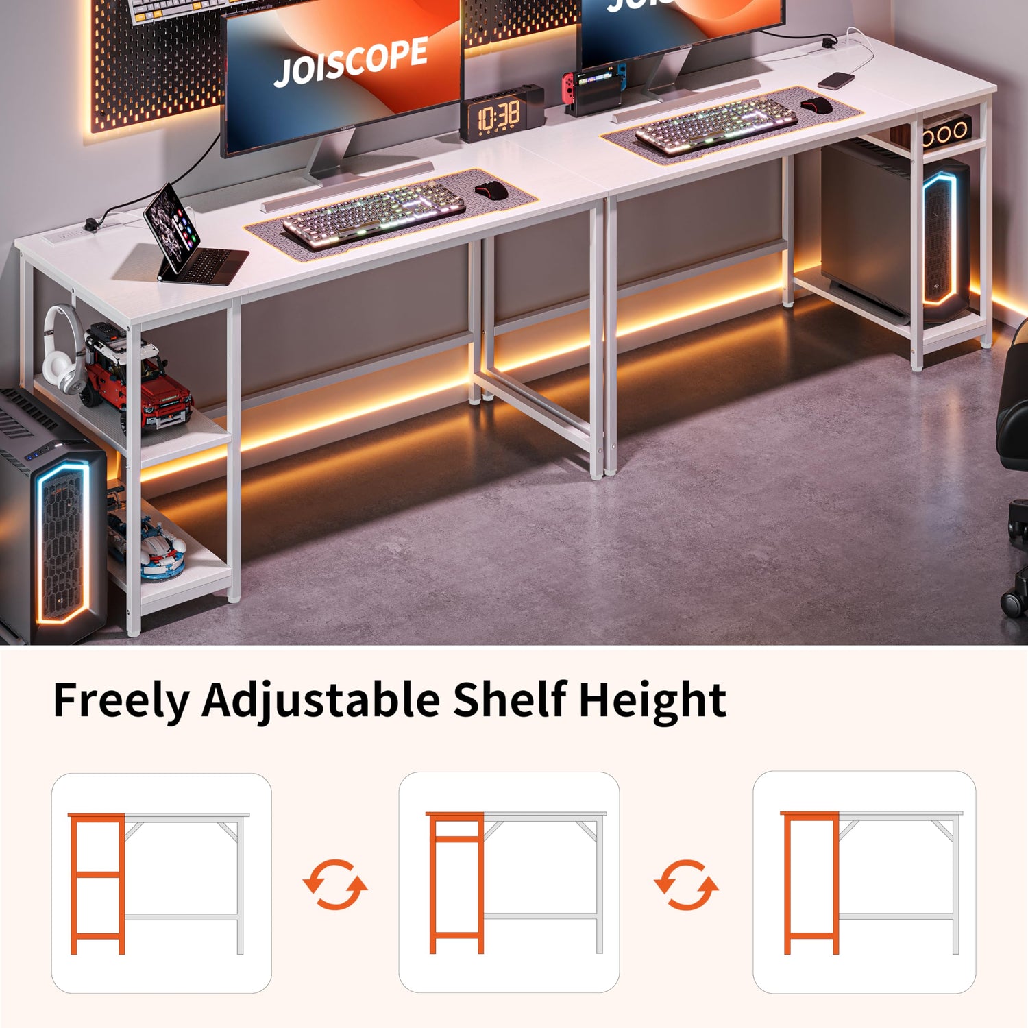 JOISCOPE Computer Desk with USB & Type-C Outlet, Home Office Desk with 2-Tier Storage Shelves, Modern Gaming Desktop Workstation, 60 inches, White