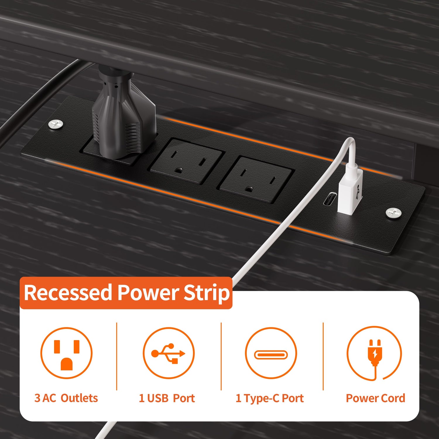 - 【Built-in Power Outlet】The JOISCOPE desk provides 3 AC power outlets, 1 USB port, and 1 Type-C port along with a 6 ft power cord. The built-in power outlet design can keep the cords organized. With this desk, you can charge multiple devices simultaneously, enhancing your work and study efficiency.