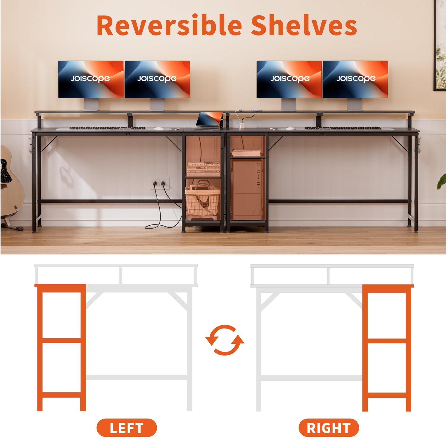 - 【Comfort & Durability】The JOISCOPE gaming desk is fabricated from high-quality E0 grade coated shavings, featuring an outstanding waterproof surface and scratch resistance. The perfectly fitted 2-piece top has no height difference or gaps when assembled, providing a smooth and natural working surface, enabling you to clean the desk more effectively.