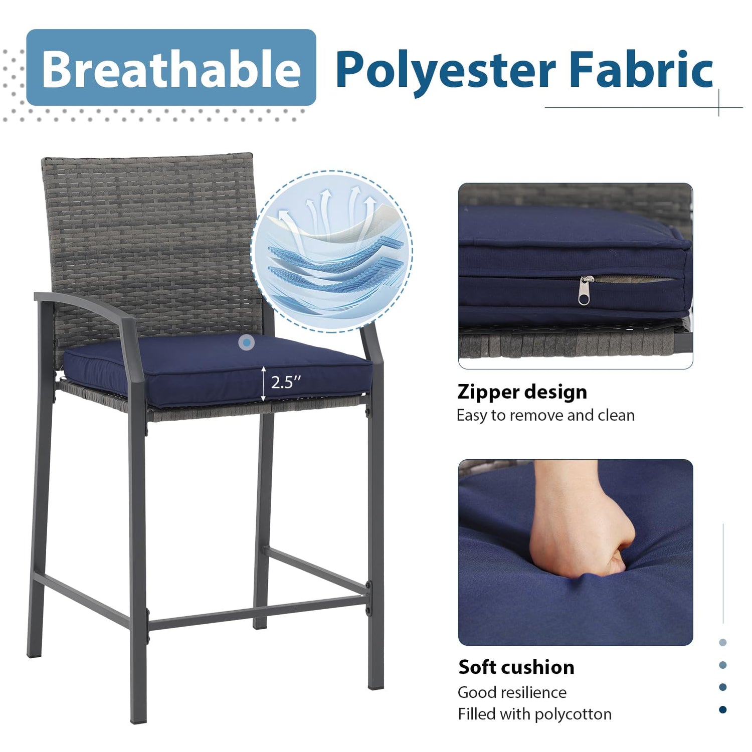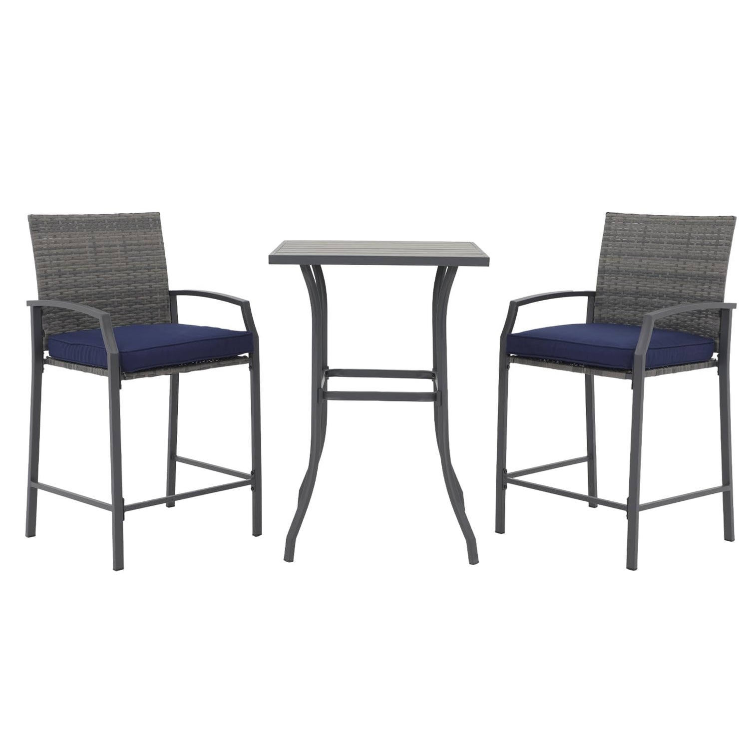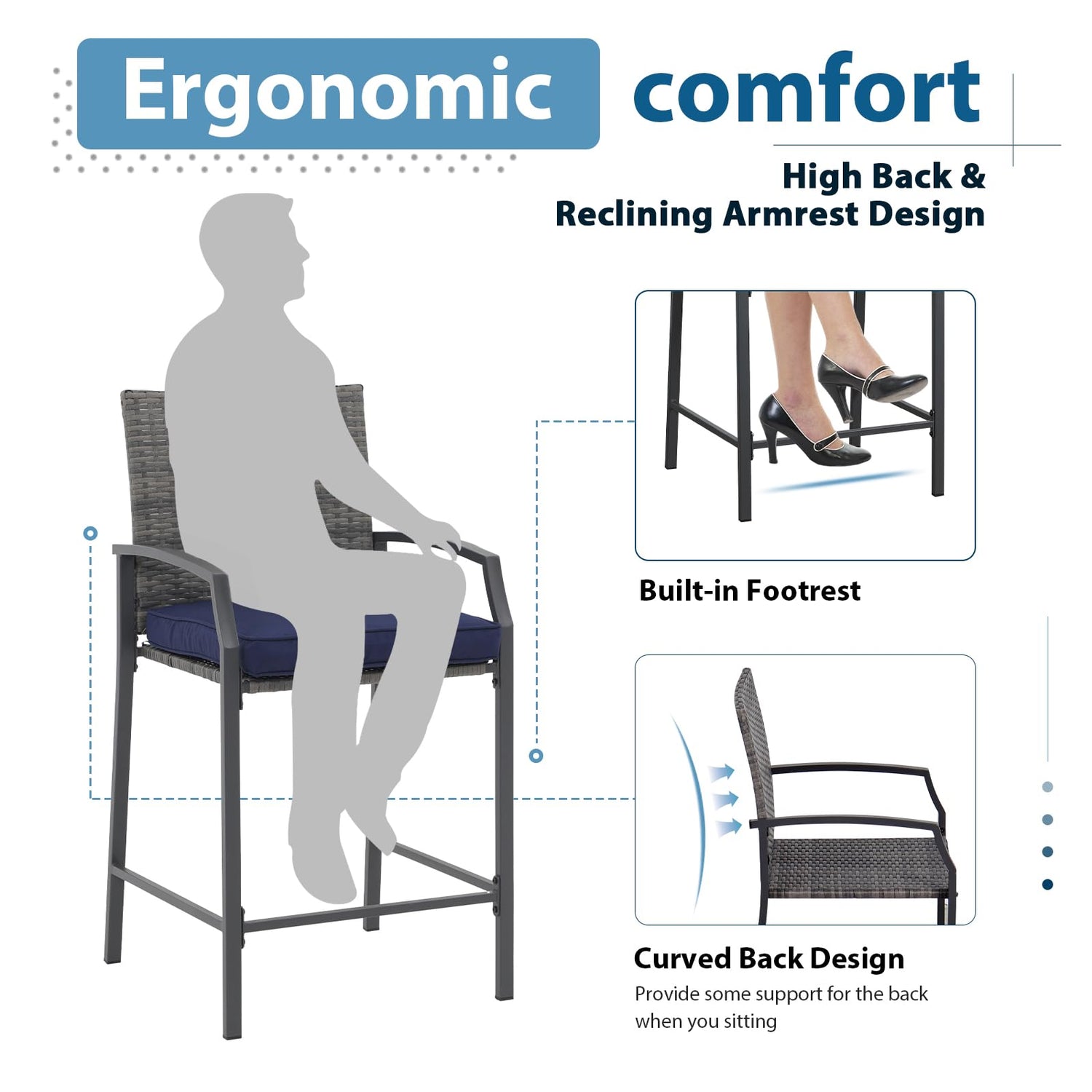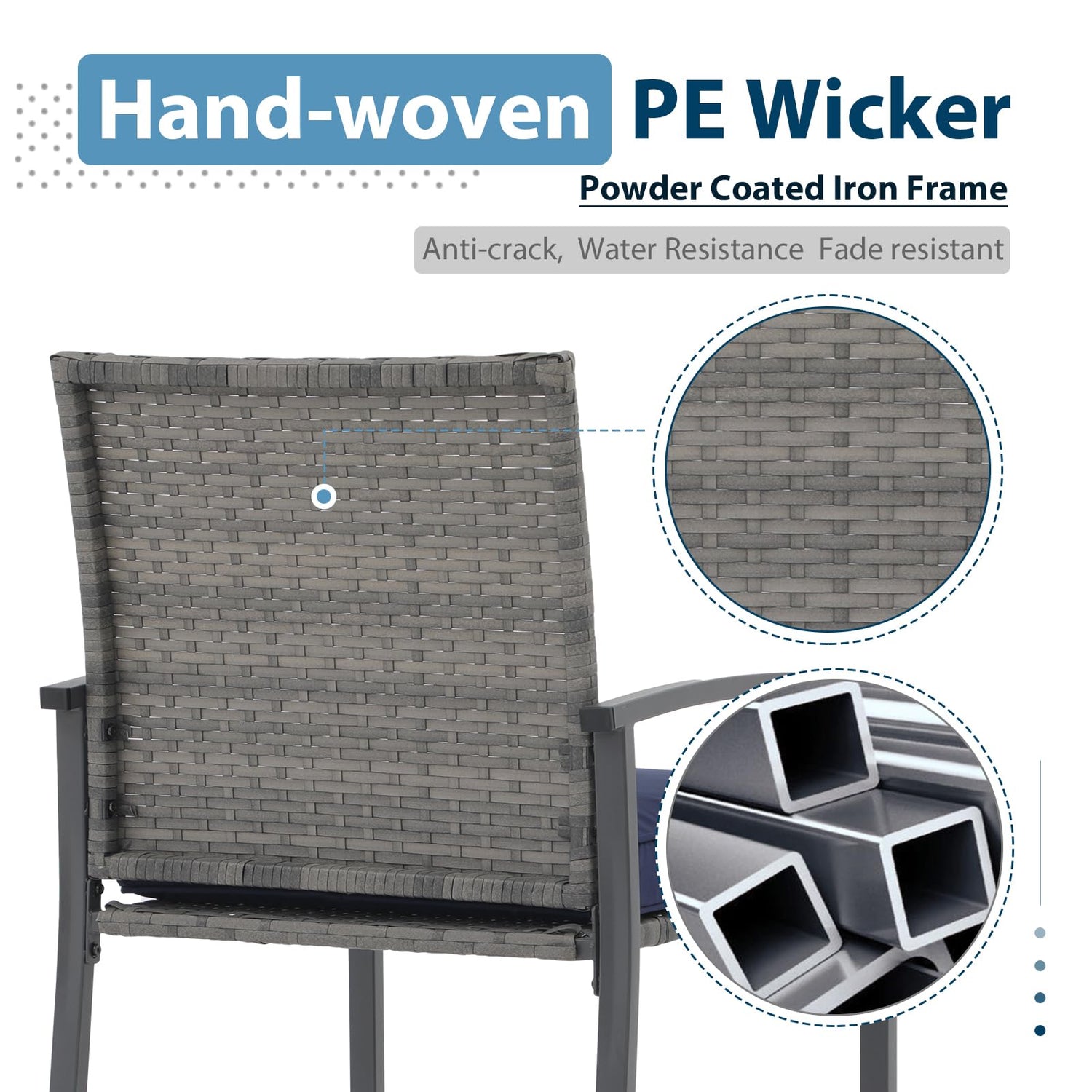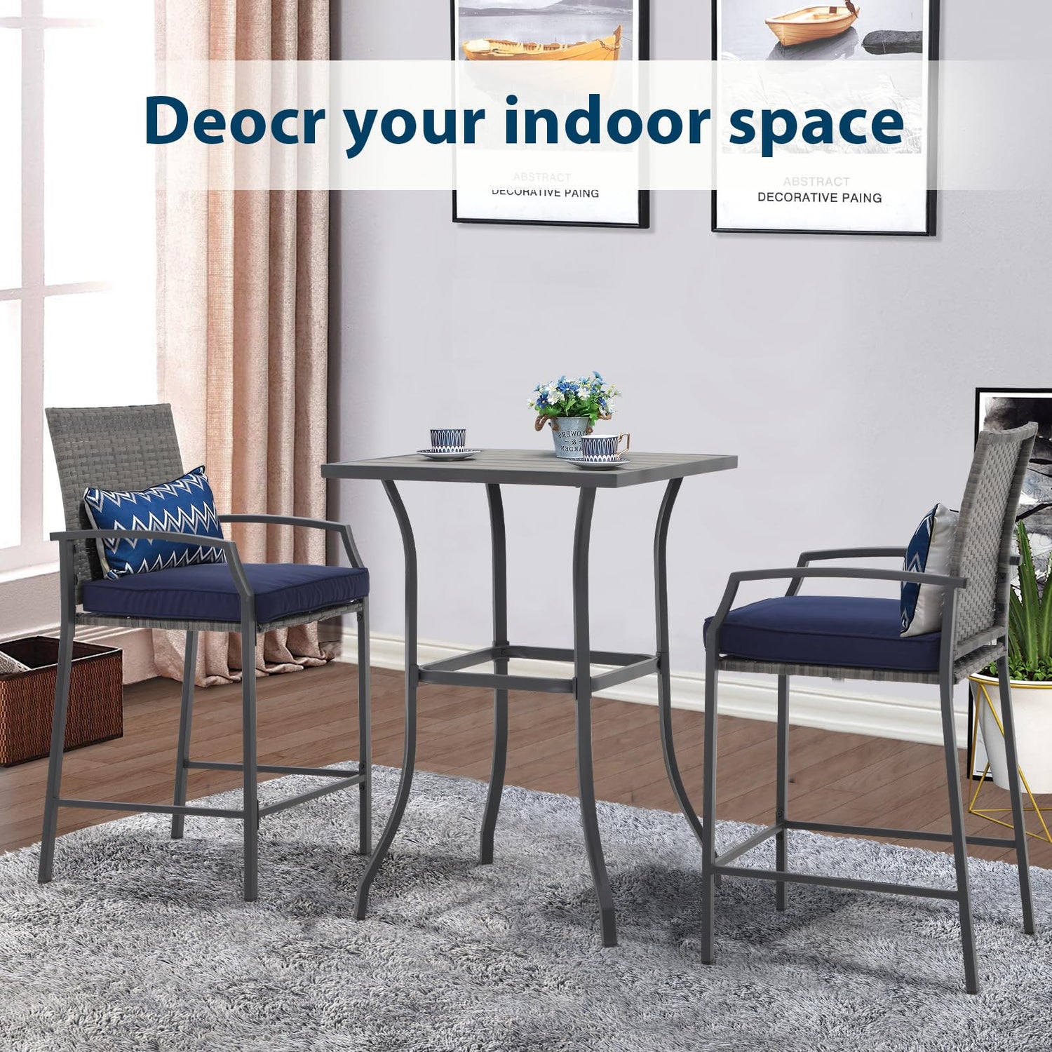 - Durable Construction - Crafted with a robust iron frame and coated to prevent rust and dust, our JOIVI 3-Piece Patio Bar Set withstands the elements. The back and seat of each high top bar stool is made of hand-woven rattan, which has the advantages of smooth surface, rust and crack resistance. The non-slip pads on the feet are designed to add stability and protect the floor from scratches.