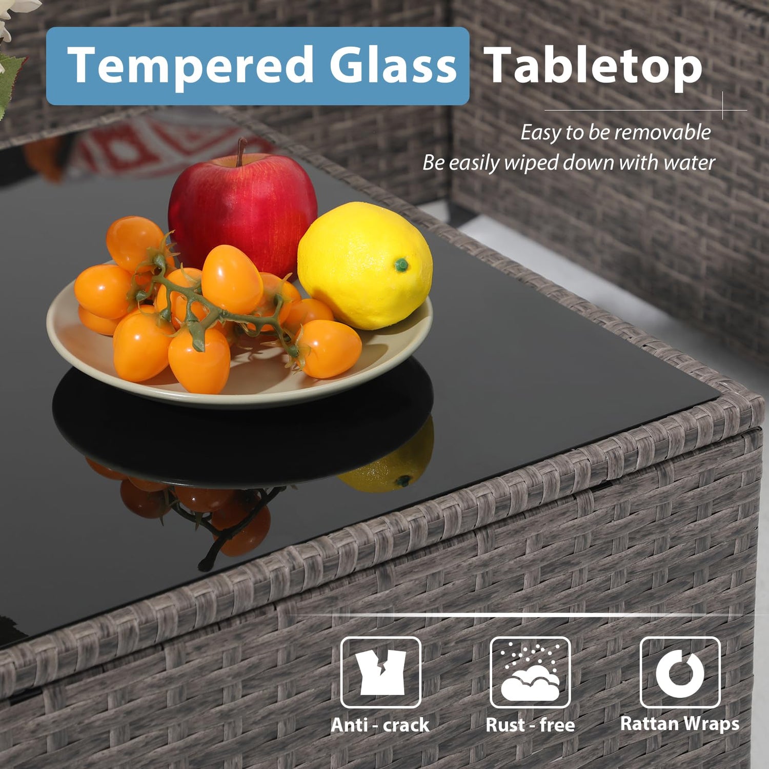- Durable Material: This outdoor patio furniture set is made of strong rust free powder coated iron frame and commercial grade all-weather hand-woven PE rattan, give you a durable wicker seating that will keep you using for years to come.