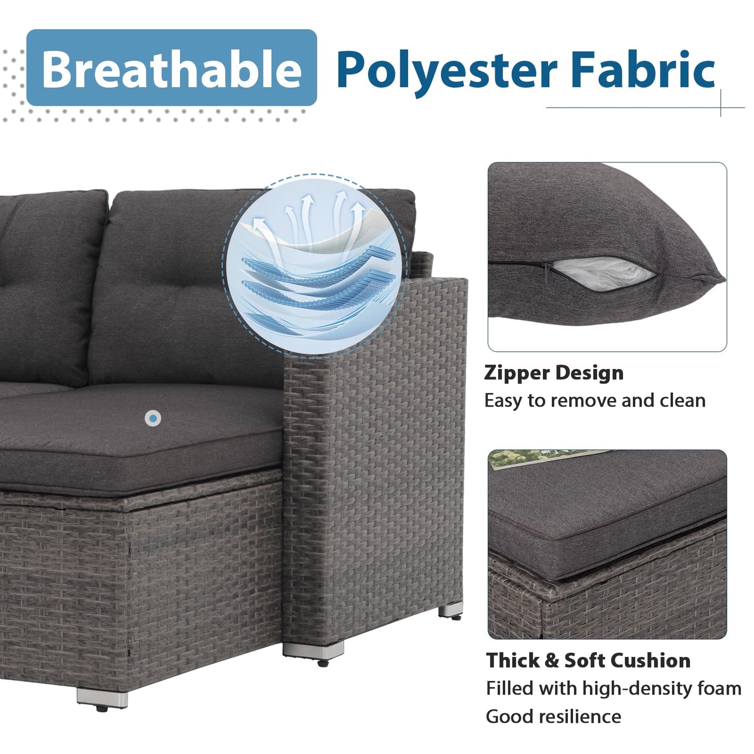 - Comfortable Experience: Equipped with thick seating cushion that contains three layers stuff of poly cotton and foam, coupled with 3 cozy backrest cushions, the outdoor sectional sofa provides you with better softness