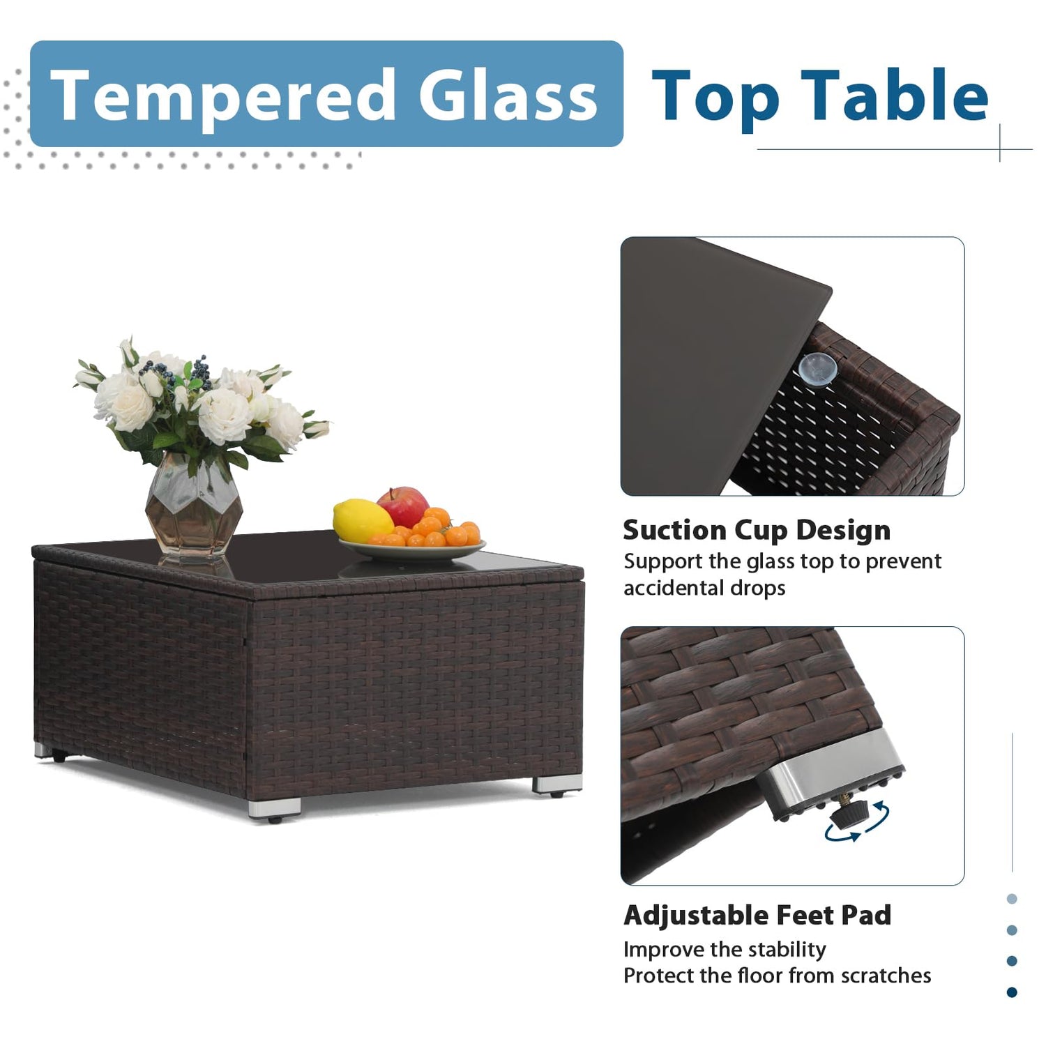 - Durability: Crafted with handwoven PE rattan for lasting outdoor use; features a safe design with brown tempered glass neatly enclosed within the rattan edges