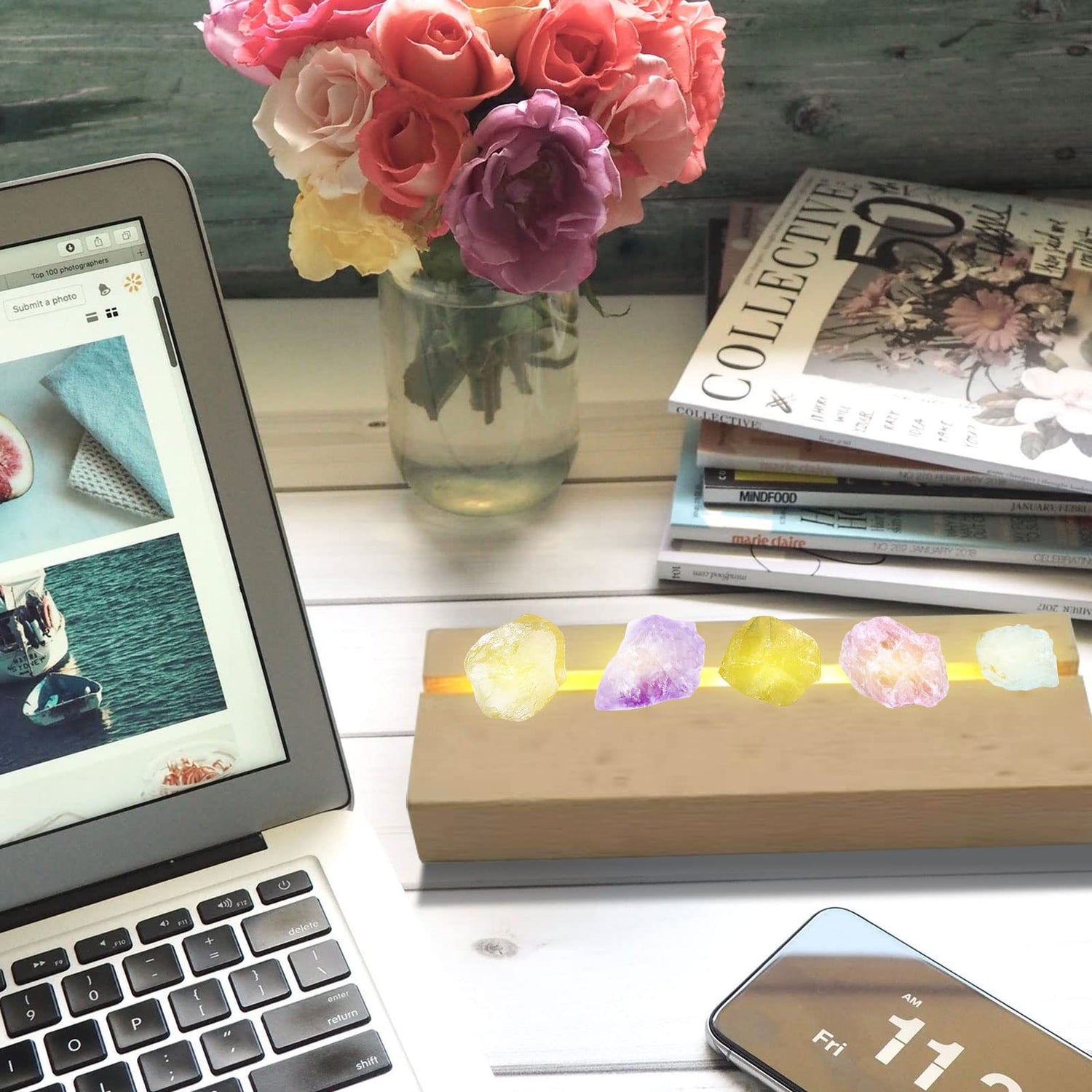 - Bright warm Color: This Rectangle LED wood light base displays used 5 LED patch and has enough brightness to illuminate your art glass.It can also be used as a small desk lamp.