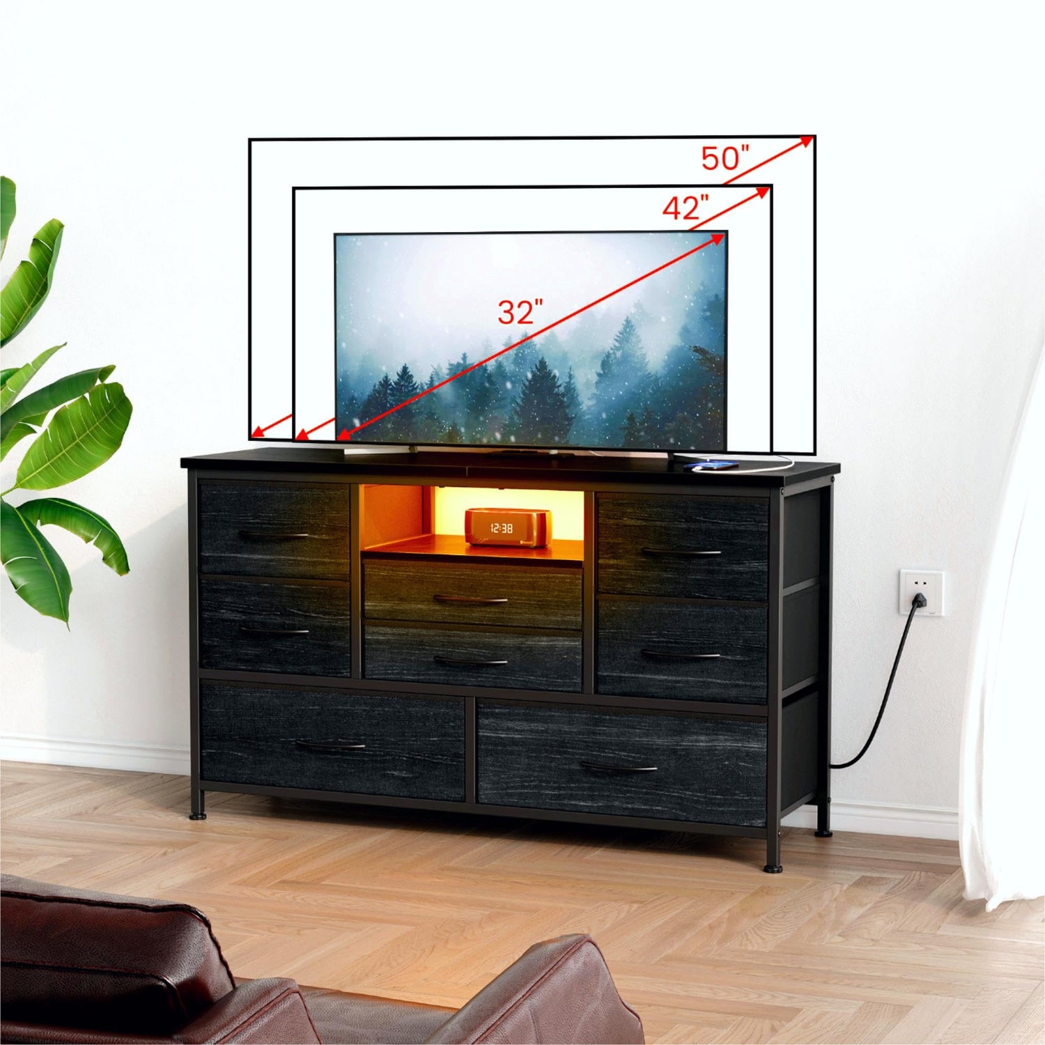 - Power Outlet: The wide 8 drawer dresser designed with 2 power outlets. The power outlet with 5 foot power cords. 2 AC outlets and 2 USB-A ports power your desk lamp, bluetooth stereo, mobile phone, etc on your dressers which makes your desktop more tidy and takes up less space.