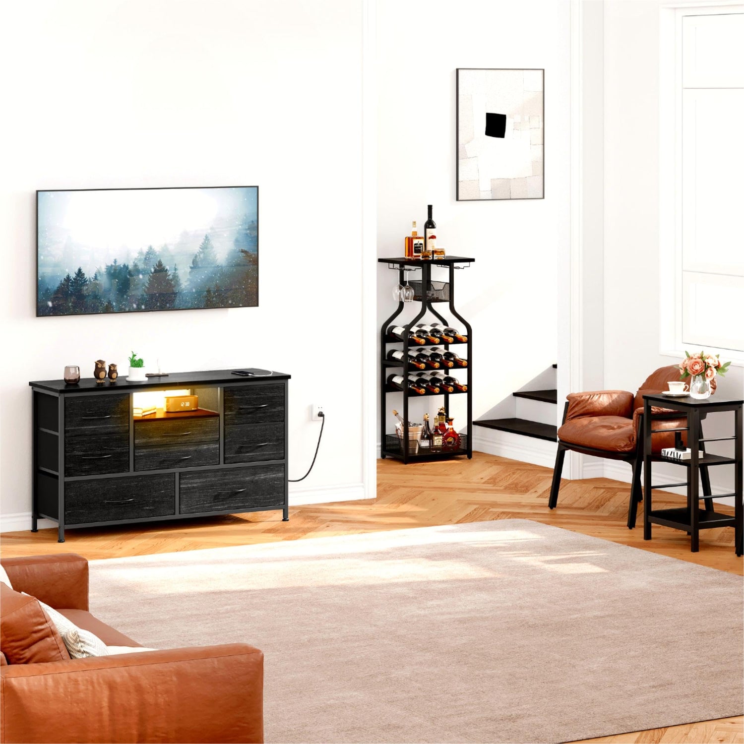 - RGB LED TV stand: Jojoka dresser tv stand with led lights creates vivid entertaining atmosphere both day and night. Up to 22 display modes for you to design your living room/bedroom. Supposed like birthday, family union, home party or other special days, why not choose it to add fun & joy.