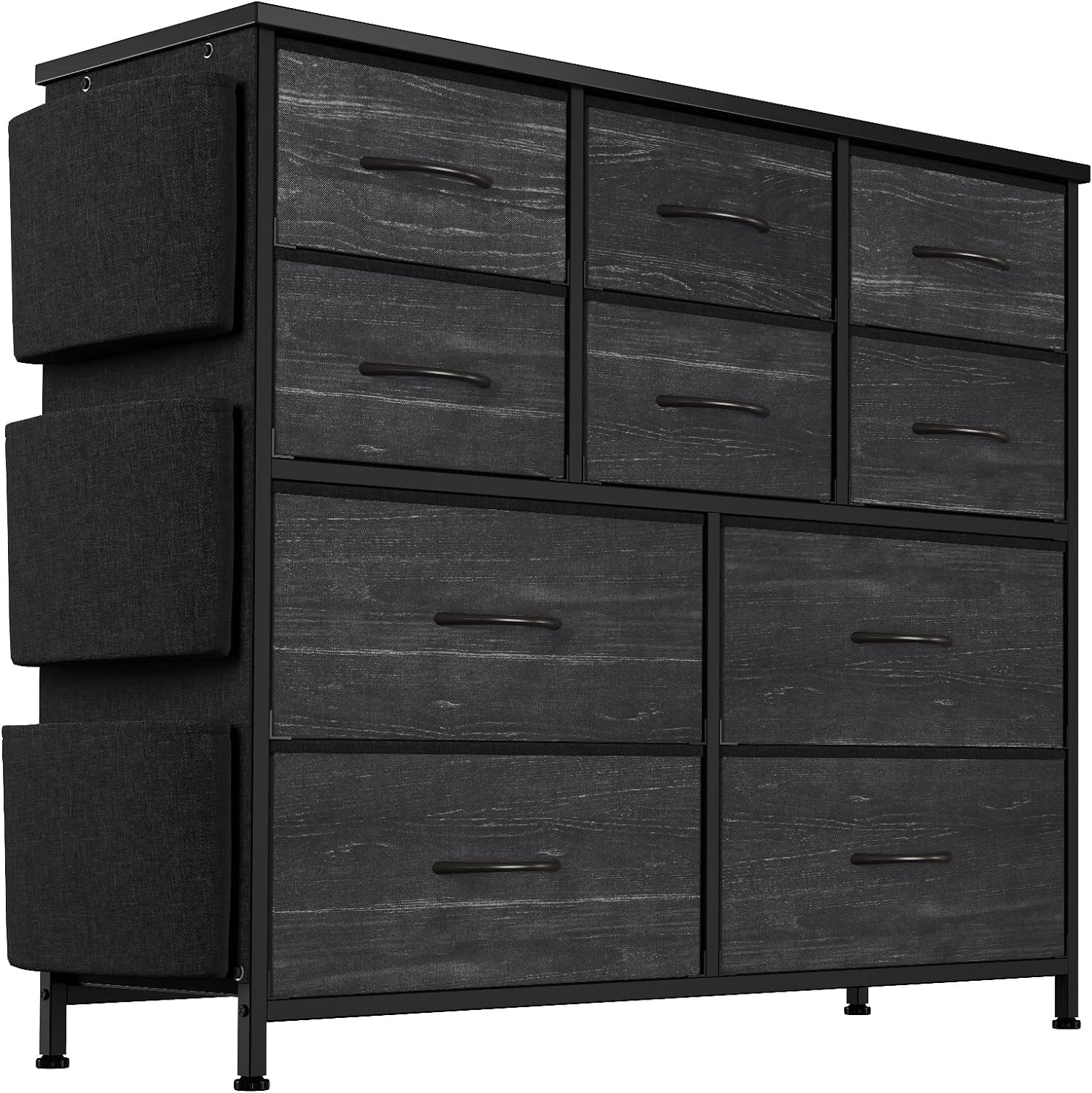 Jojoka Dresser for Bedroom with 10 Drawers, Dressers & Chest of Drawers, Fabric Storage Drawer with Side Pockets for Kids Room, Closet, Hallway, Entryway, Living Room (Black)