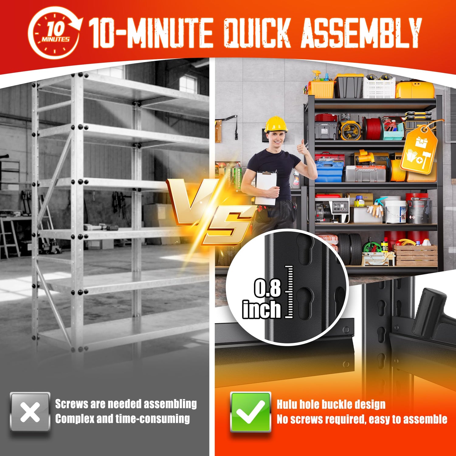 - Make assembling your storage rack effortless and hassle-free – We understand our customers’ needs better. Based on feedback that the instruction manual wasn’t clear enough, we optimized our installation process. Now, even someone with no assembly experience — like a first-time user or a lady on her own — can easily complete the setup in just 10 minutes.