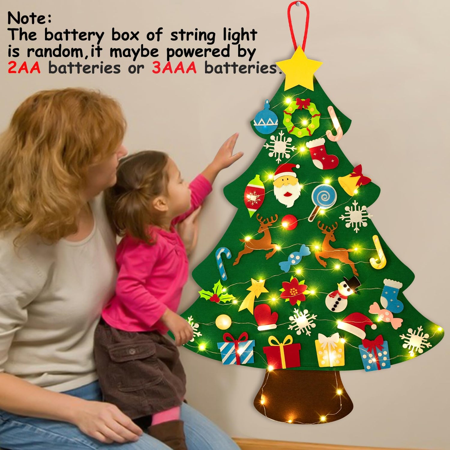 - Package includes 1pcs DIY felt Christmas tree,33pcs ornament cutouts,1pcs red string and 1pcs snowman advent calendar.(gift)