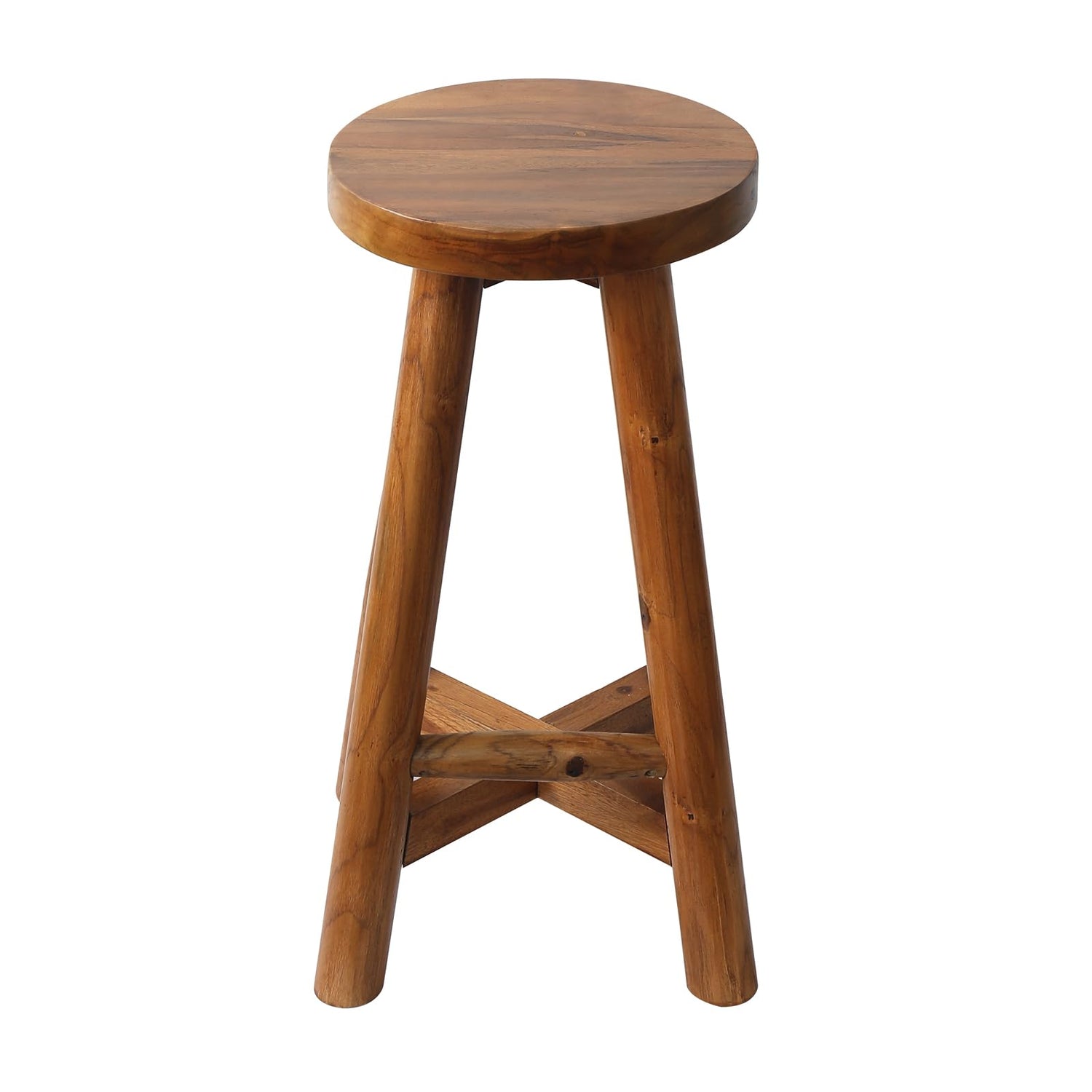 JOLLYMER Bar Stool with Round Seat for Kitchen Island Counter, Solid Teak Wood Barstool in Espresso Finish, Home Bar Furniture, 29-Inch Height