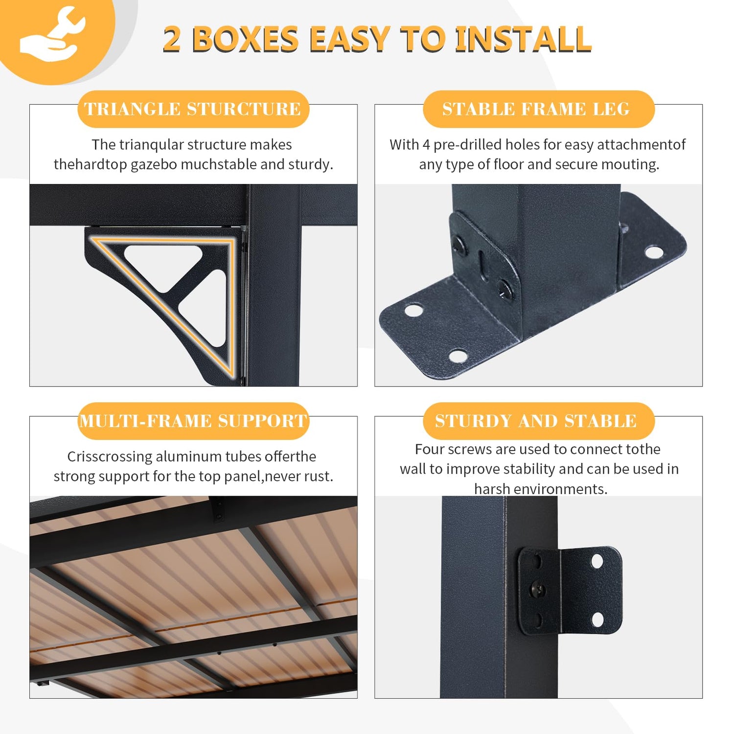 - 【Usage Guidance】Users are recommended to mount the awning against a wall using the nails to ensure the maximum stability. The gazebo is perfect and suitable for use near a hot tub, pool, or as an relaxation space.