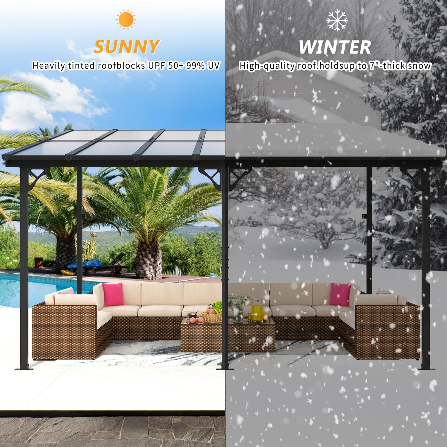 - 【Great Load-Bearing】The pergola can withstand bad conditions such as heavy snow or rain as it is designed with an excellent load bearing of 55lbs/㎡. The wind resistance level is 31-38mph and the snow carrying depth is 4 inch respectively once you fasten it securely and tightly on the wall and ground.